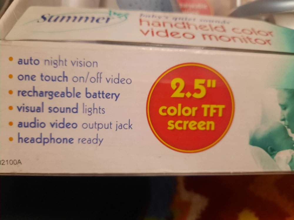 This is a Summer Infant Handheld Color Video Monitor with a camera and a parent unit. The camera has night vision. The parent unit has a full color display and a rechargeable battery.