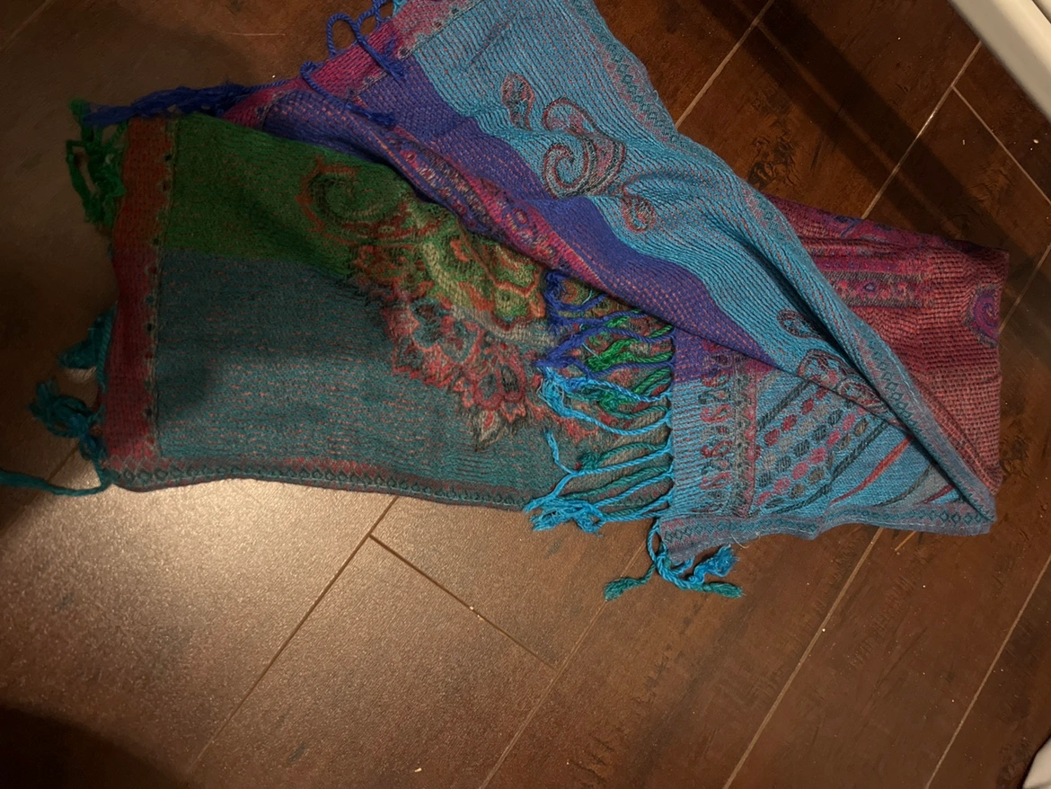 A colourful scarf with a paisley pattern. Pick up 4140 Bathurst St.