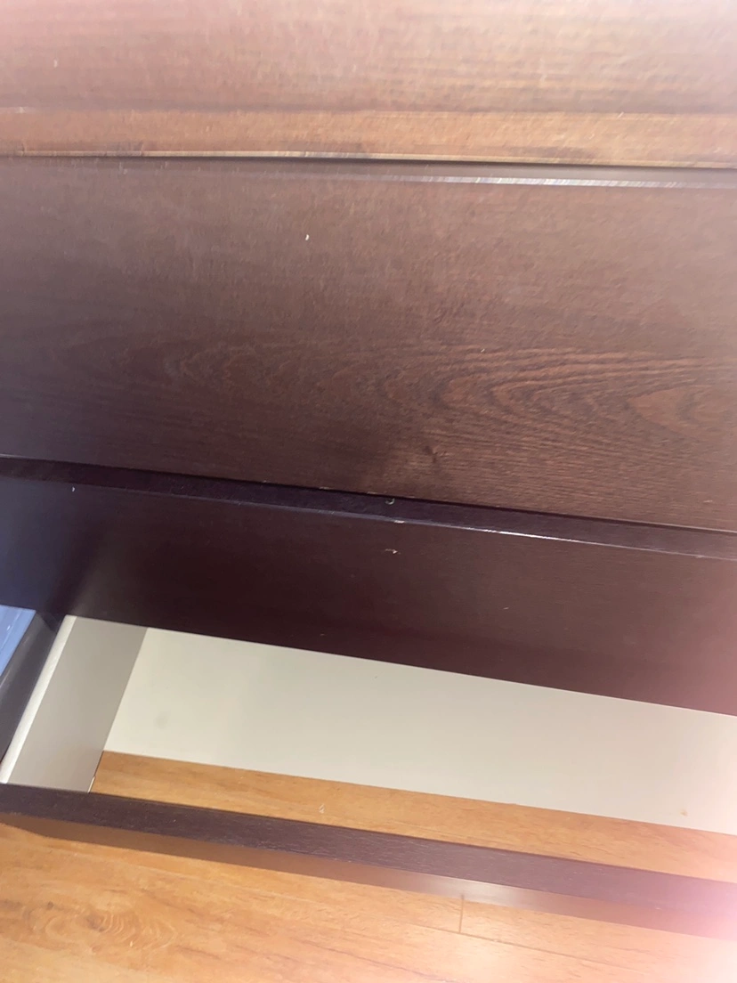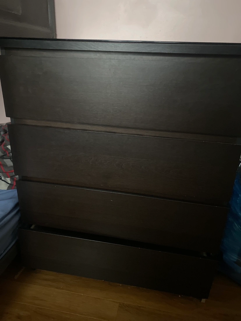 Three drawers dresser in a dark brown back colour. The last two drawers need to be fixed. It has a nice shape from outside. The top has a dark glass. Ready to pick up Location Bristol and Kennedy. Kindly, check out the other items Thank you for your interest