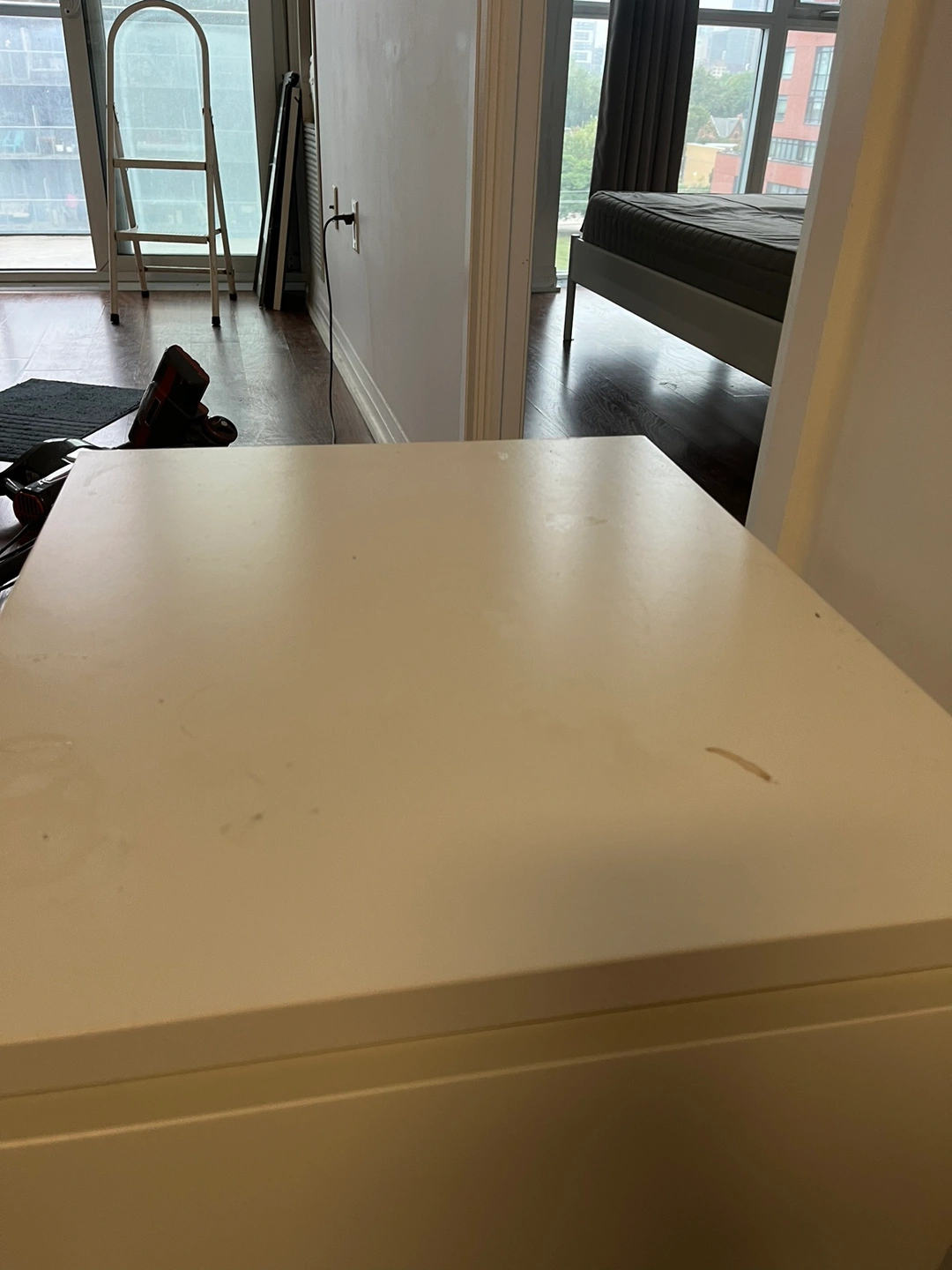 Two drawer nightstand /beside table. Great for storing items and decor. Have some light marks. Pick up before 30th at Dundas and parliament. $5 each, I have two of them.