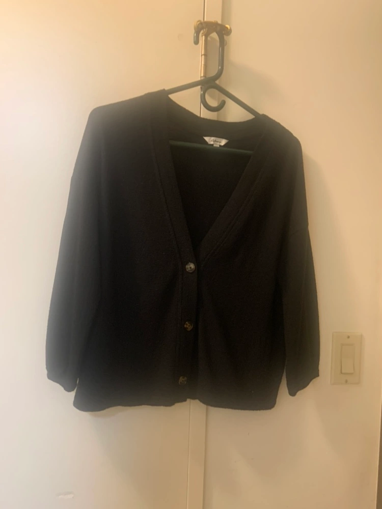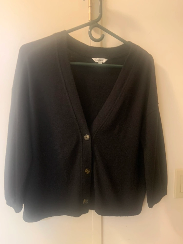 A black cardigan with a V-neck and 3/4 sleeves. It has a button closure and is perfect for cool days. I just never wore it. Pickup near Davisville station