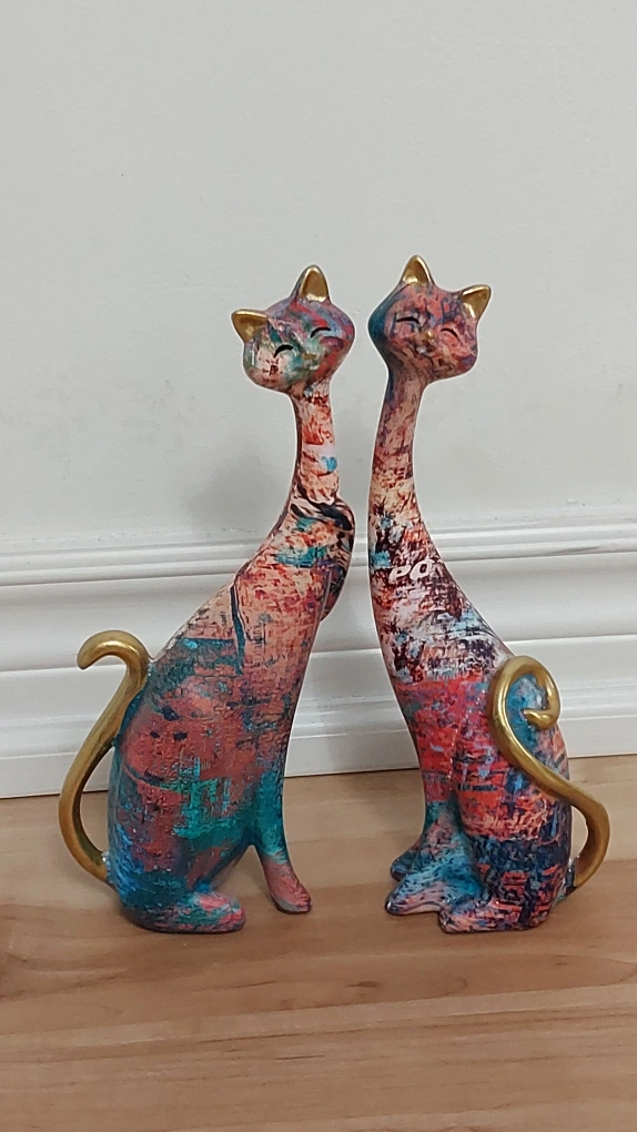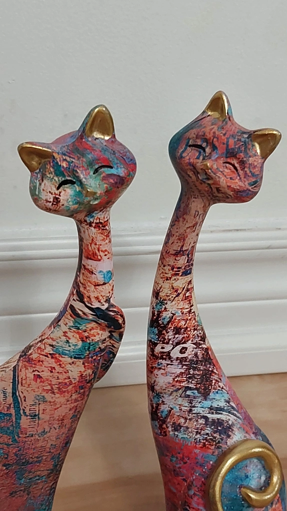 BNIB 2pcs Abstract Art Cat Resin Statues: A Pair of Elegant Home Decor for Your Living Room or Office Polyresin material Great for cat lovers ❤️ & perfect for gifting 🎁 Height 9.4 inch/24cms Smoke free and pet free home Kindly note all sales are final and no return or refund Please check my other listings aswell😊