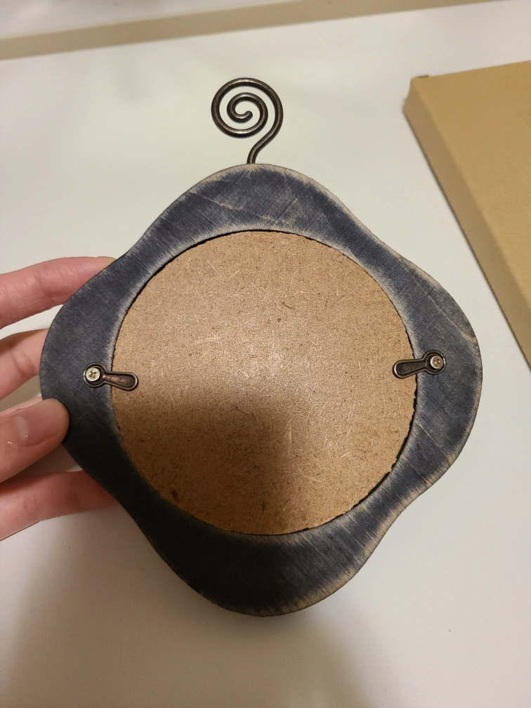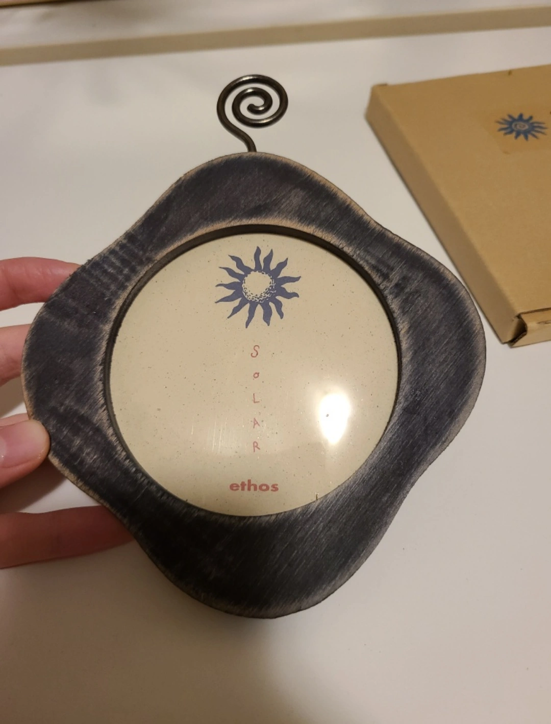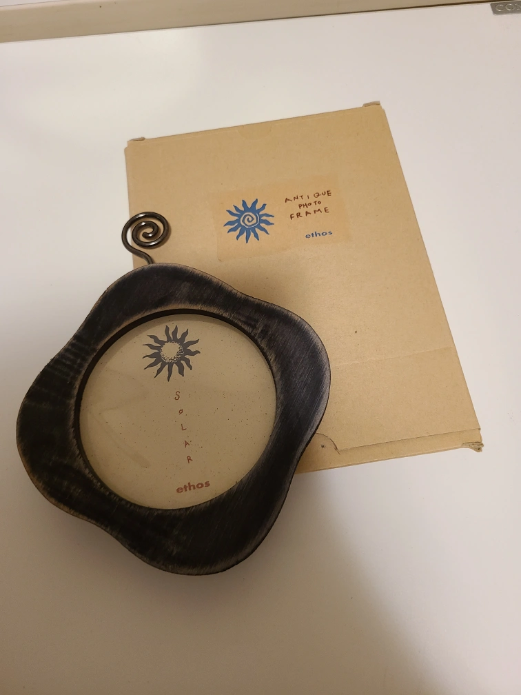 Small antique wooden photo frame, circular with a 3.5-inch wide opening. New.