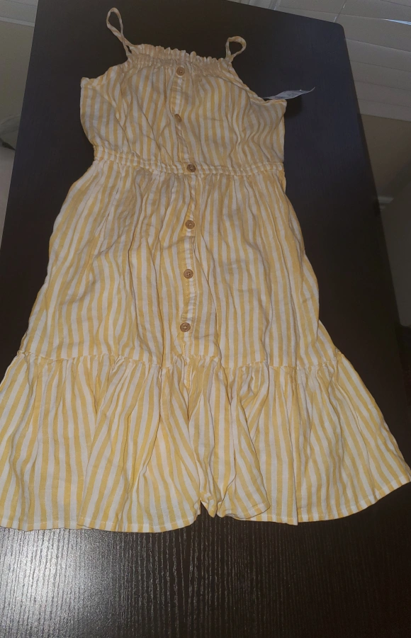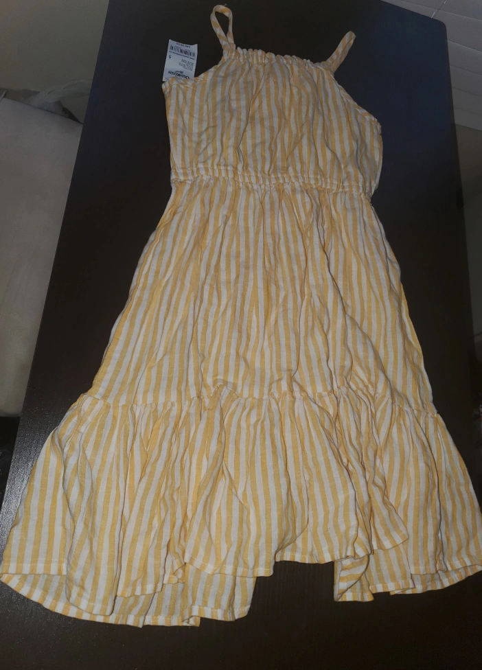 *firm price* Selling a yellow and white striped dress in size 5 for kid/girls. The dress has never been worn with the tag still on it. Unfortunately, my child did not have the chance to wear it.