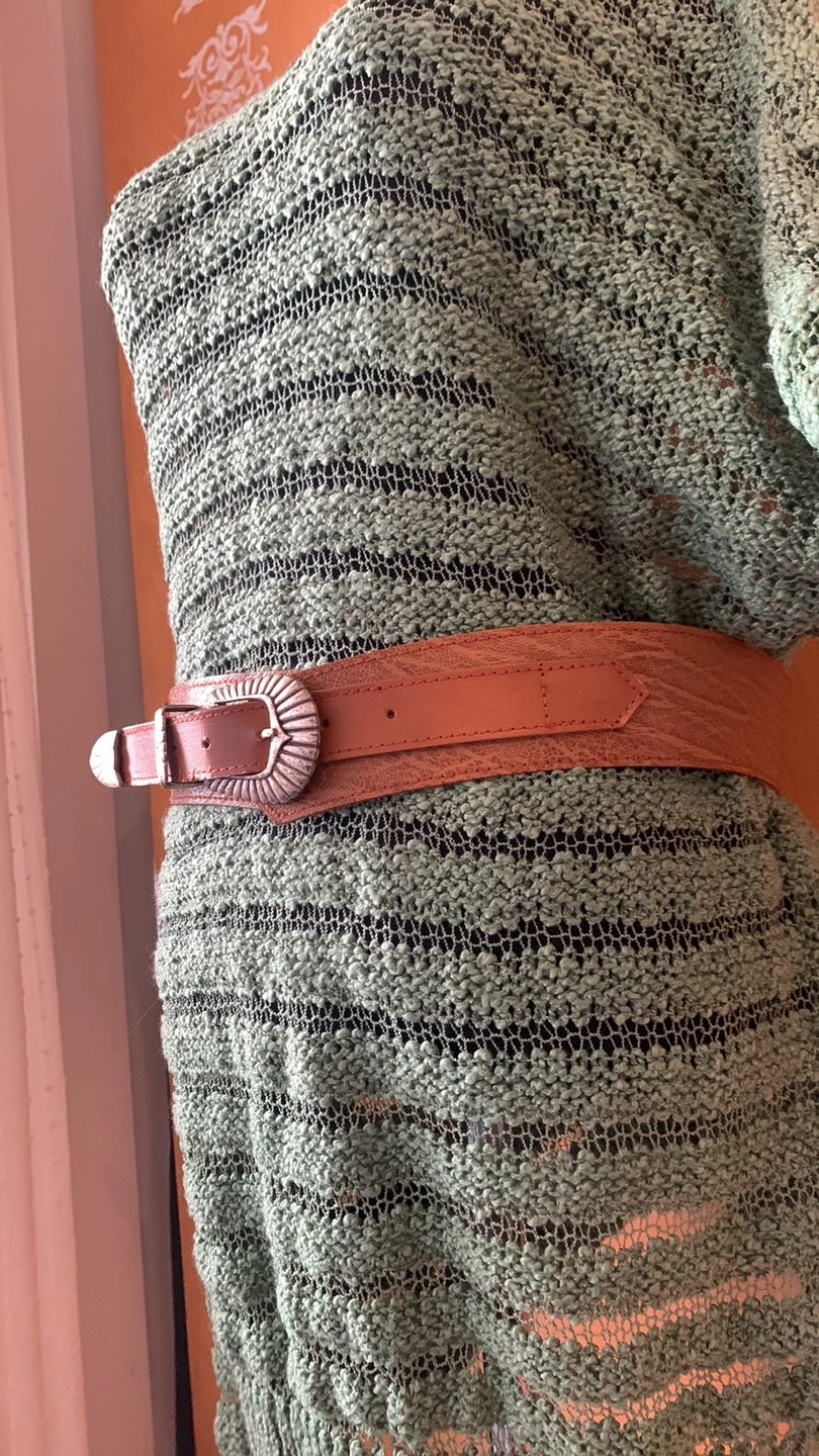 Item: Vintage 80s Leather Layered Belt with Small Embellished Buckle Condition: 10/10. No Stains/Rips/Tears. Measurements (Inches): Belt On a Flat Surface: 35 Inches / 90 CM Size: Medium Details: 5 Punch Hole Year: 80s Color: Tan Brown Print/Pattern: Textured (See Video) Material: Leather Style: Western / Perfect Pairing w/ Vintage Jeans or Oversized Sweater / Metallic Buckle Embellishments / Thin Strap with Buckle Holes Local pick up downtown Toronto or drop off available!