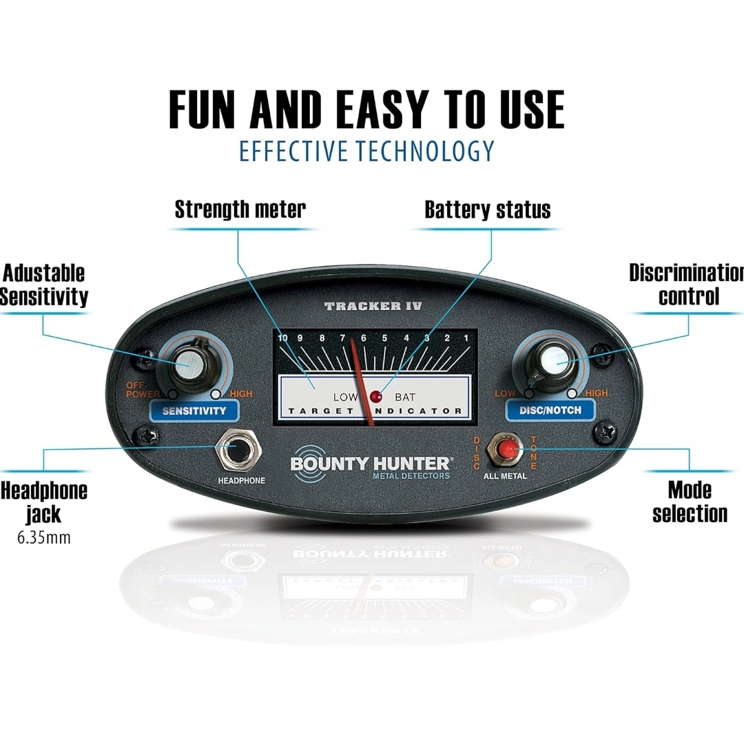 Discover Lost Treasure! °•○•°•○•°•○•°°•○•°•○•°•○•°•○ Retails $219+ ☆`New | open box 》$150 ✨️ 📍 Pick Up Point @ Scarborough Golf Club Road & Lawrence Ave East 📦 May Deliver Locally or Ship via Canada Post for an additional cost* 🔎 BE SURE TO CHECK OUT MY OTHER LISTINGS FOR MORE AWESOME DEALS! Thank you. °•○•°•○•°•○•°°•○•°•○•°•○•°•○ The Bounty Hunter Tracker IV Metal Detector offers an optimized experience for metal detection. It features a waterproof 8" (20.3 cm) open face searchcoil, 2-tone audio discrimination, and a 3-position Mode Switch. With its target strength meter and sensitivity control, users can easily identify and locate hidden metals. This metal detector is designed for comfort with a cushioned hand grip and a padded armrest. It also includes a low battery indicator so you'll know if it needs a charge before the battery completely dies. Designed with your convenience in mind, this metal detector is easy to assemble and highly portable. Tech Specs Made In the USA Weight - 4.2 lbs Length - Adjustable Coil Size - 8 inch waterproof coil Operates on two 9V alkaline batteries Operating frequency 6.6 kHz Made in the USA Additional Features Target Strength Meter. Discrimination Control (to eliminate undesirable targets). Automatic Ground Balance. Sensitivity Control. Built-in Speaker. Bounty Hunter Tracker IV Metal Detector Performance Detects coin-size targets up to 6 inches deep; larger targets up to 2 feet. Detects the presence of all metals to include gold, silver, brass, aluminum, iron and steel. Features 3 Modes of Operation. 2 Tone Audio Discrimination. Motion All Metal Mode. 3-Position Mode Switch. 8-Inch Waterproof Searchcoil. 1/4-Inch Headphone Jack. Easy to use knob control interface Maximize depth of detection with the power/sensitivity control. Eliminate undesirable targets with the discrimination control. Quickly switch between Discrimination, All-Metal and Tone modes with a flick of the mode toggle. Detects all kinds of metal The Tracker IV will detect all kinds of metal from iron relics, coins and household items to precious metals like silver and gold. The 8 inch searchcoil is completely submersible; can be used for detecting in shallow water. Recommended for coin and jewelry hunting, relic hunting, prospecting and utility applications. World's most popular metal detector Renowned discrimination circuitry, easy-to-use technology and proven treasure performance has made the Tracker IV the choice for many treasure hunters