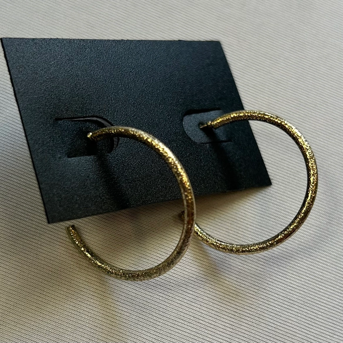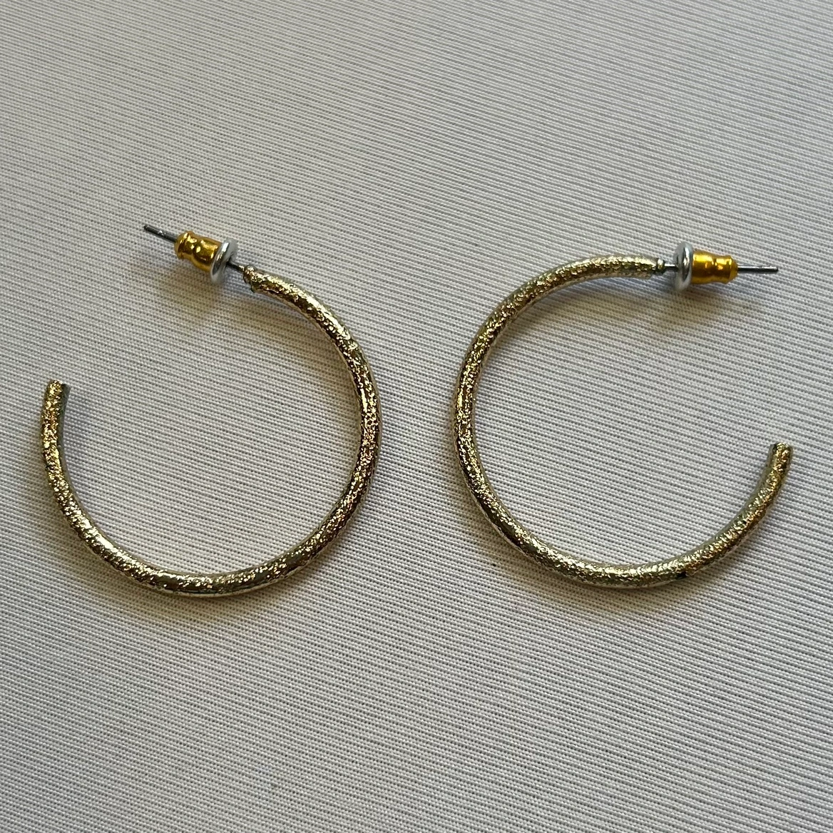 Elegant and chic, these MyStyle hoop earrings exude luxury with their textured gold finish. Designed to catch the light with every movement, their detailed surface adds a touch of sophistication to any outfit. Perfect for both daytime flair and evening elegance, they offer a versatile accessory that can elevate your look instantly. See photos for measurements. Cross posted. Pick up only. Located 2 blocks west of Polo Park. Shipping options available message me for details.
