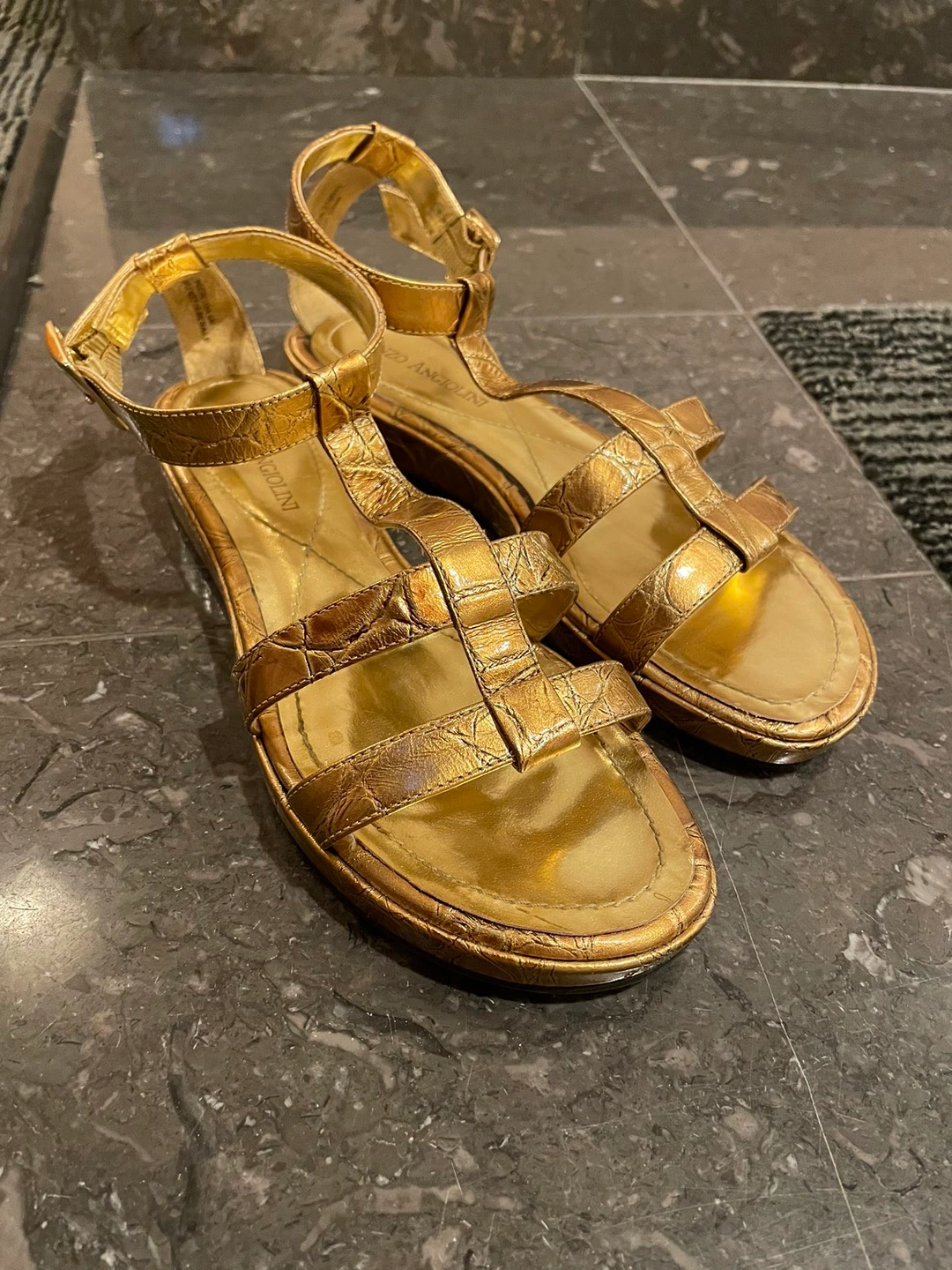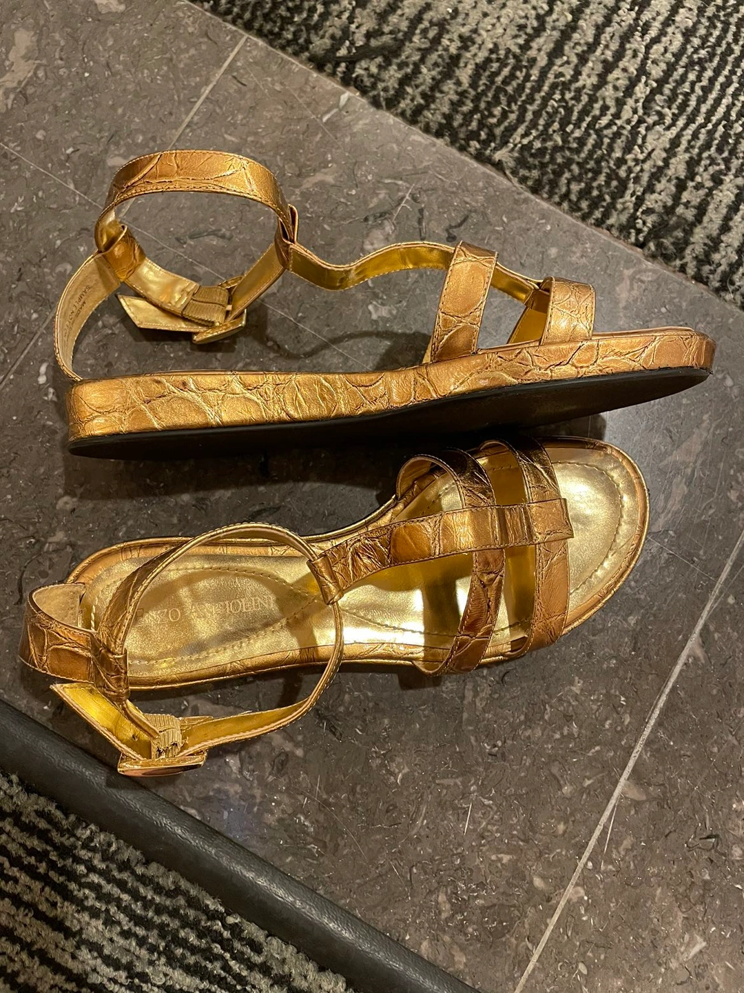 Purchased from a sample sale but never had the chance to wear Beautiful gladiator style gold coloured Enzo Angiolini sandals Neutral colour to work with any outfit