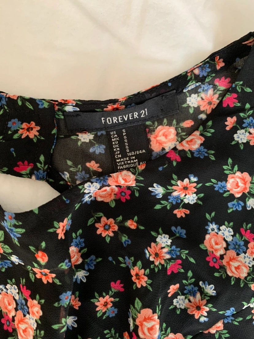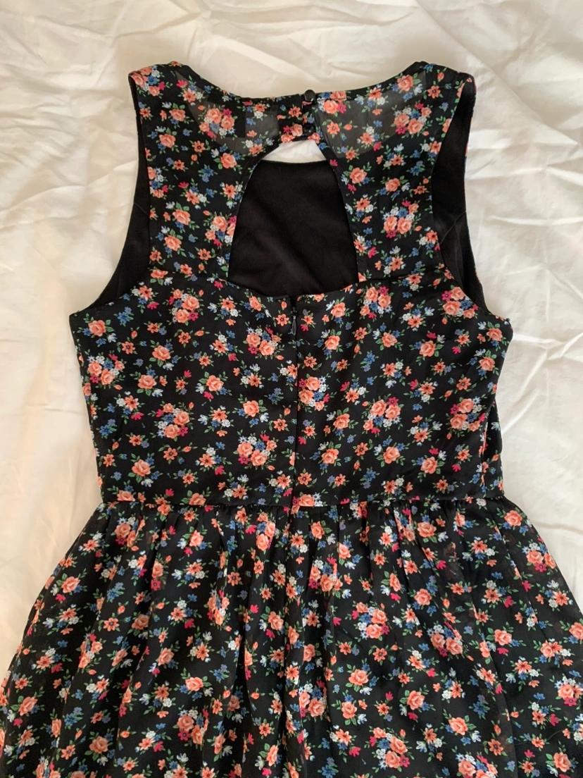 Black floral dress with a keyhole back. Size small. The dress has a thin, sheer layer over top of the solid black lining. Never worn, brand new with tags removed. Never ended up reaching for it. Pick up Spadina Ave & Front St W