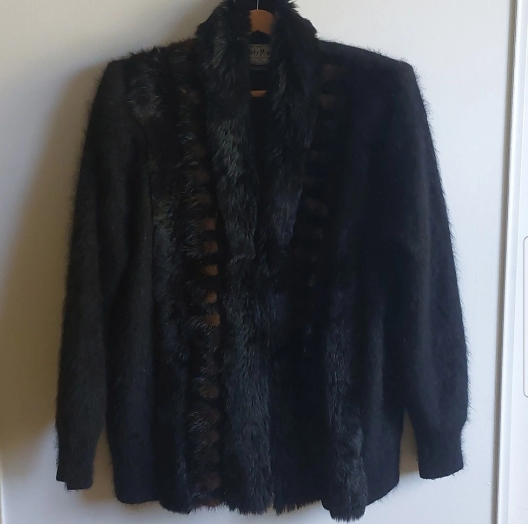 Approximately sized medium to large 23" pit to pit 28" long 24" long sleeve In good condition. No damage or obvious wear. Open front. No pockets.