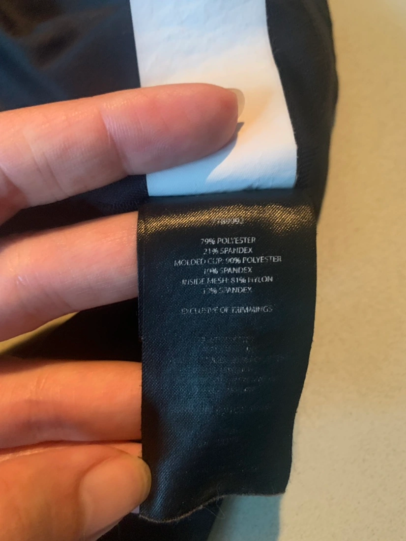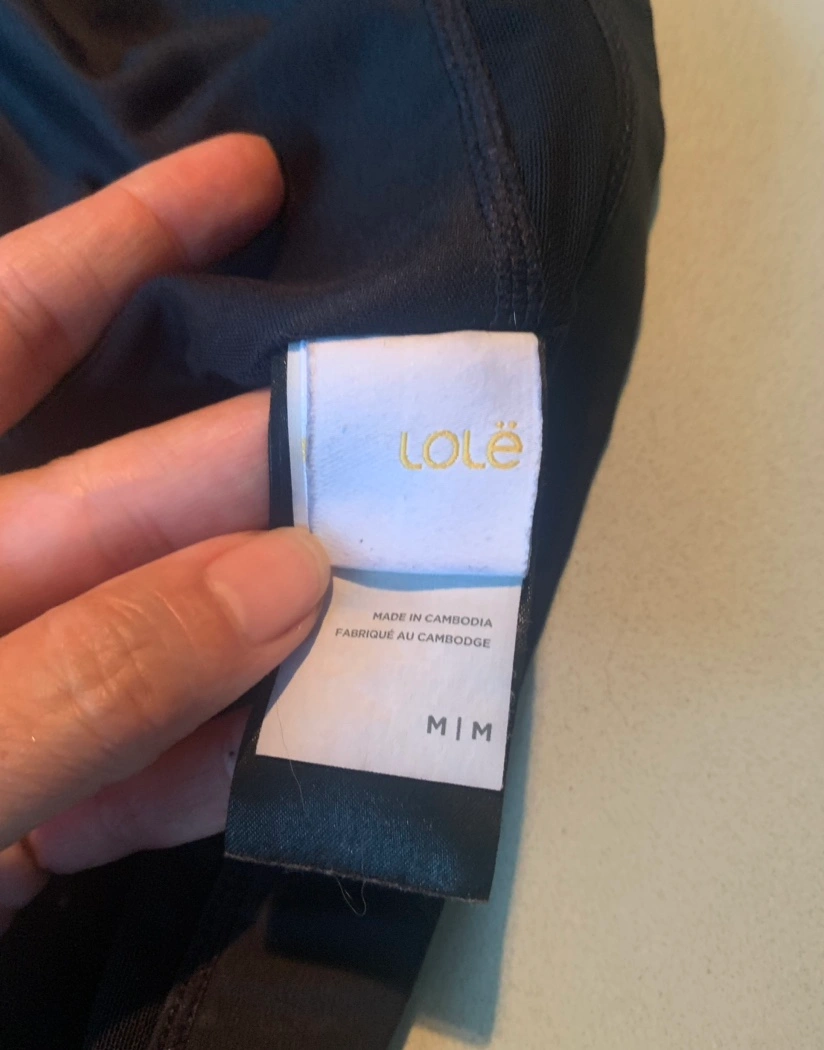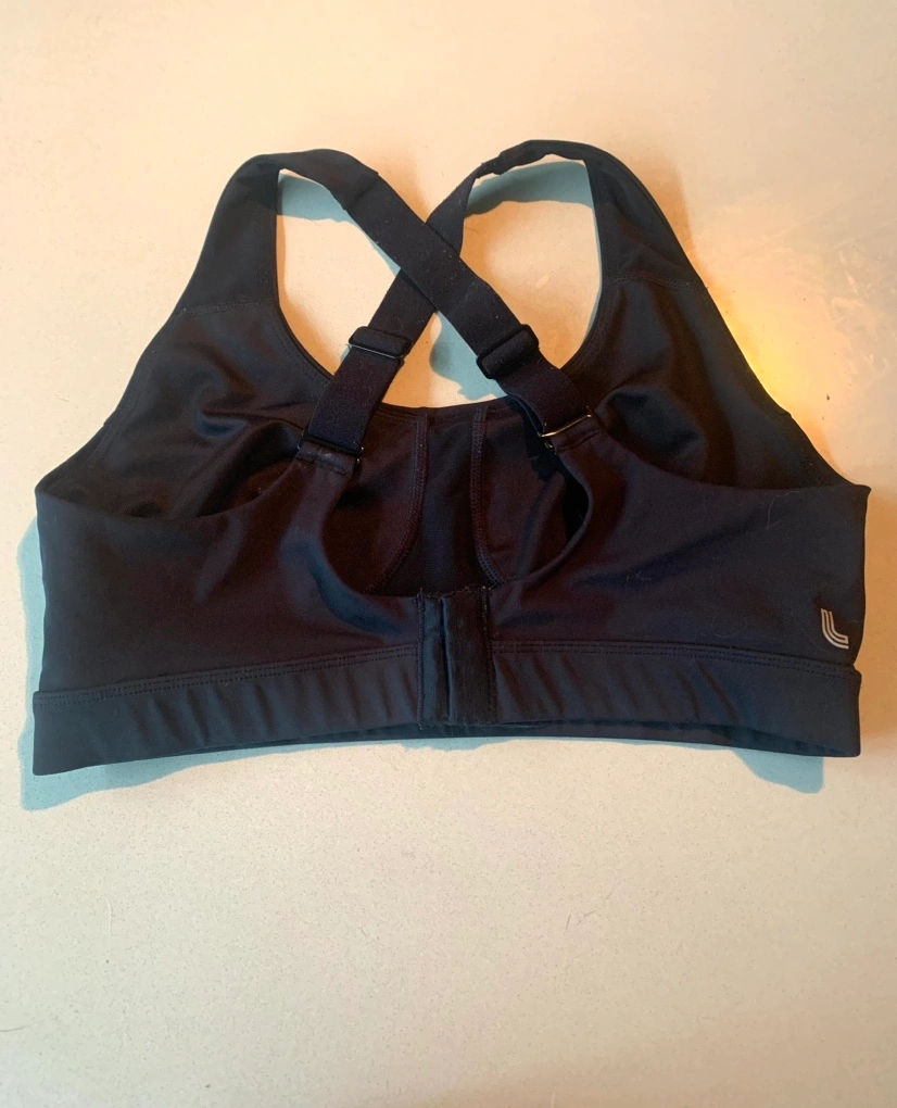 Black sports bra with a racerback design. It is a size medium. Brand is Lole. Retail price around $65. Good used condition - tiny amount of piling on straps.