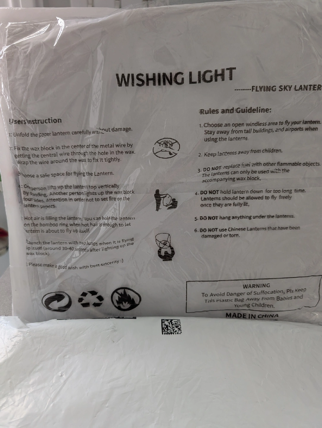 Wishing Light Flying Sky Lantern. Comes with instructions and rules for safe use. Please read instructions carefully before use