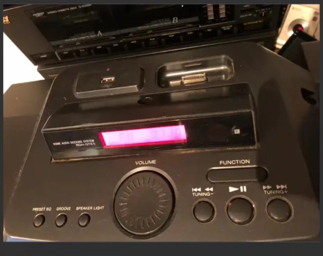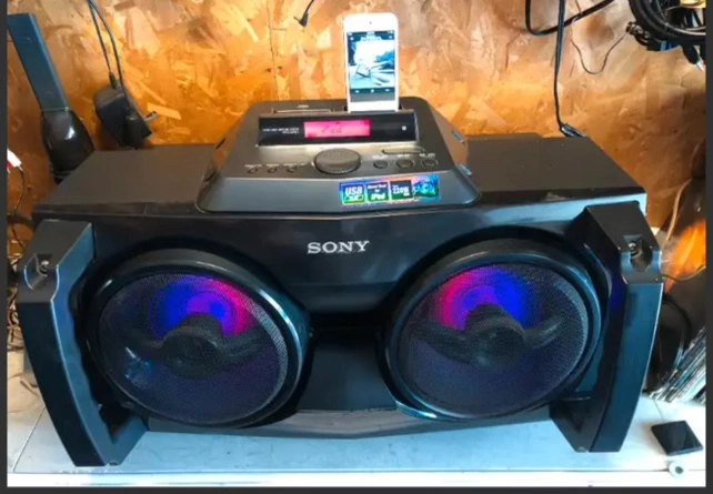 The sound system is in good working order and comes with the remote control. It also has a USB port, iPod dock and auxiliary input. It has a built-in CD player and radio. Description Sony Boombox Huge GhettoBlaster 220W Model RDH-GTK1i - Very Nice Sounding Unit. Comes with Bluetooth Adapter Powerful, room-filling audio from a tabletop system that looks as good as it sounds. The Sony RDH-GTK1i Hi-Fi Music System boasts an impressive 220-watt RMS power output, two illuminated 2-way speakers, and an iPod dock so you can enjoy your playlists. Your iPod will charge whenever it's docked, so you won't have to worry about it running low on power. The RDH-GTK1i has a USB port so you can plug in a flash memory drive. If you have AAC, WMA and MP3 files saved, the unit can play these from flash memory or a disc. You'll also be able to tune into AM and FM radio stations for talk radio, sports, music and more. And you can program 20 FM and 10 AM stations for one-touch access. If you feel the need to go beyond these options, you can connect another device like a computer, gaming console, MP3 player and more to the line-in audio jack. Or you can connect an external CD drive to play your collection of CDs. This system also has several functions that allow you to customize your audio including an equalizer with 6 presets for different types of music and a GROOVE bass boost so it can punch out extra deep bass when you want it to. The system also has a one-line fluorescent display so you can see what's playing. With the included remote control, you can make adjustments without even getting up from your favorite spot. If you do decide to take it on the go, you'll find that the dual side grip handles come in handy for transport. This portable yet powerful hi-fi system makes an excellent choice for a bedroom, office, or anywhere else you want high-output, superb sound whether it's coming from your disc collection, iPod playlist or the radio. 220 Watts RMS Rock out with serious sound quality with the powerful yet portable RDH-GTK1i hi-fi music system Illuminated 2-Way Speakers The unique LED speaker illumination changes color with the beat of the music to bring your tunes to life iPod Dock Charges Device as it Plays Dock your compatible iPod and it will charge as it plays, allowing it to stay powered up and ready to rock AM/FM Radio With 30 Presets Tune into AM or FM radio stations and program up to 20 FM and 10 AM stations so you can hear your favorites at the touch of a button -- enjoy talk radio, sports programming, music and more USB Port If you have audio files stored on a flash memory drive in MP3, AAC or WMA format, simply connect the flash drive to the USB port to hear them played through the system Audio In Jack for MP3 Players and More Connect and play a portable MP3 player or PC via the USB or auxiliary inputs -- you can even connect your gaming console and immerse yourself in the sounds of your favorite games GROOVE Bass Boost Customize your audio by adding additional deep bass when you want it EQ Modes Choose from 6 preset equalizer modes for different types of music like rock, pop, jazz and more to tailor your sound even more Side Grip Handles When Sony says the RDH-GTK1i is portable, they mean it -- the two side grip handles make it easy to take the system on the go 1-Line LCD Display Convenient LCD display makes it easy to see what's playing Can deliver nearby π at full price