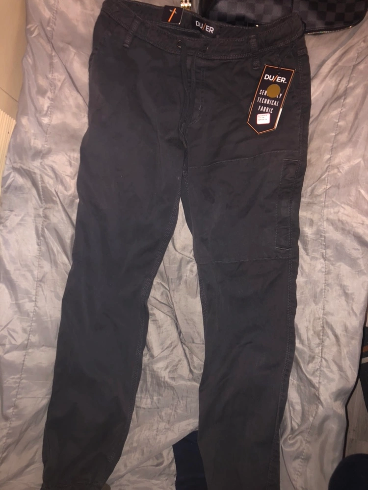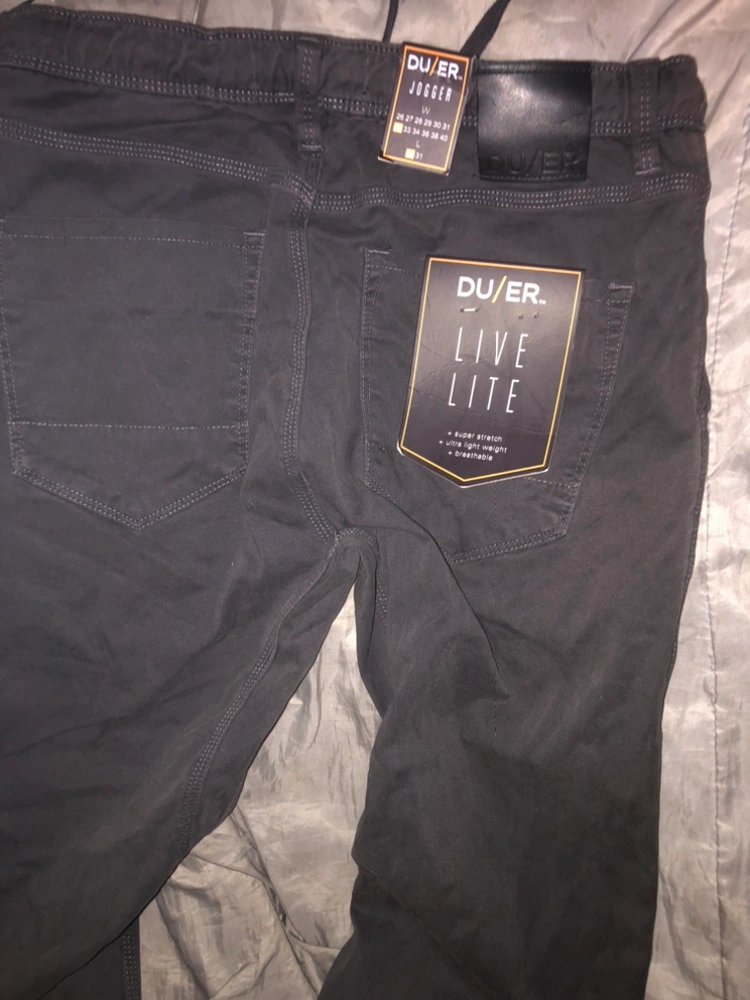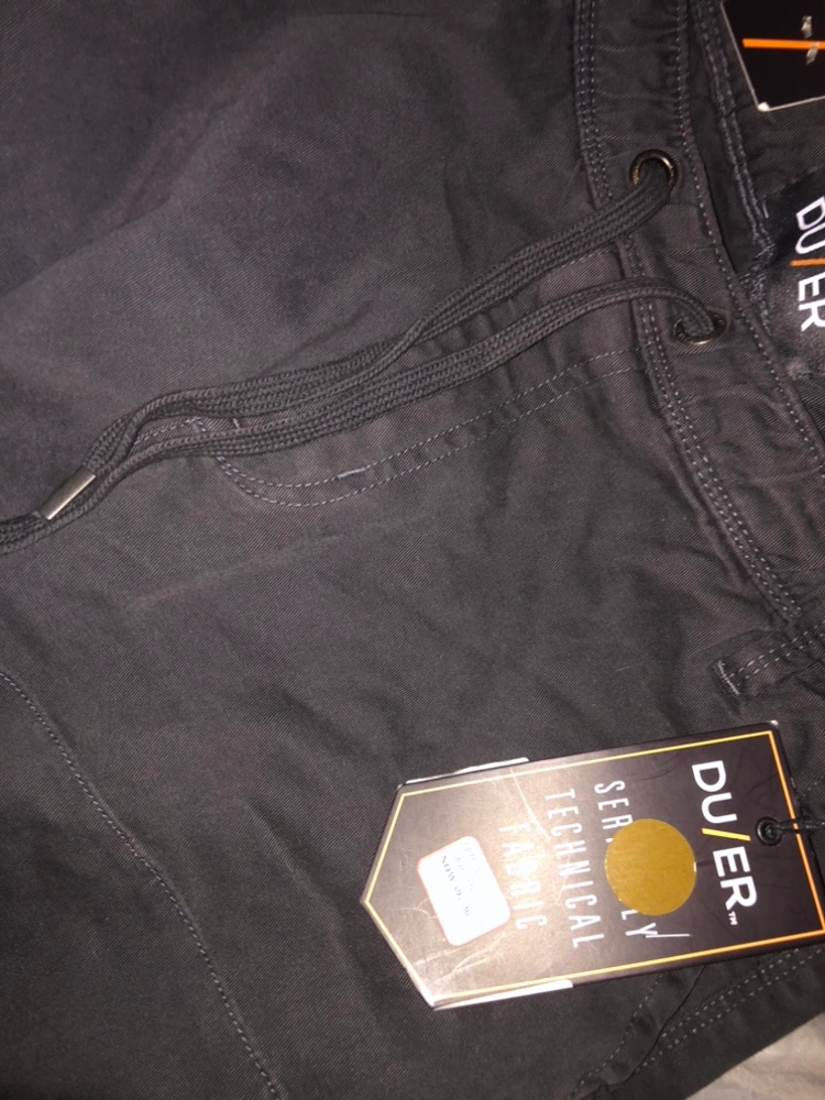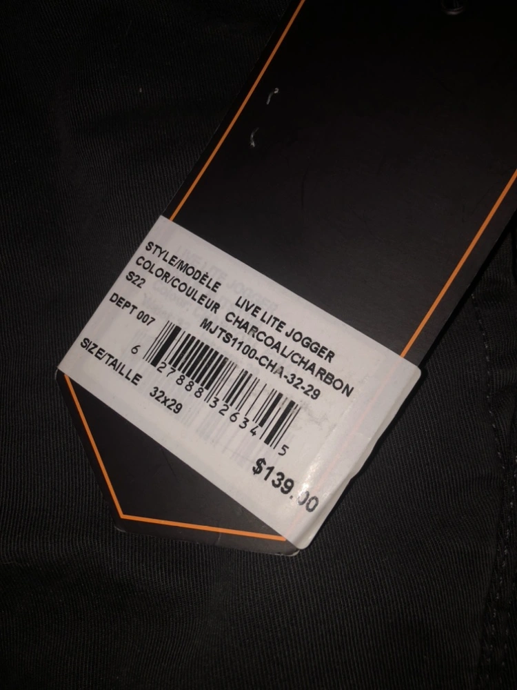 Black jogger pants with a drawstring waist and multiple pockets. 140$ new with tags