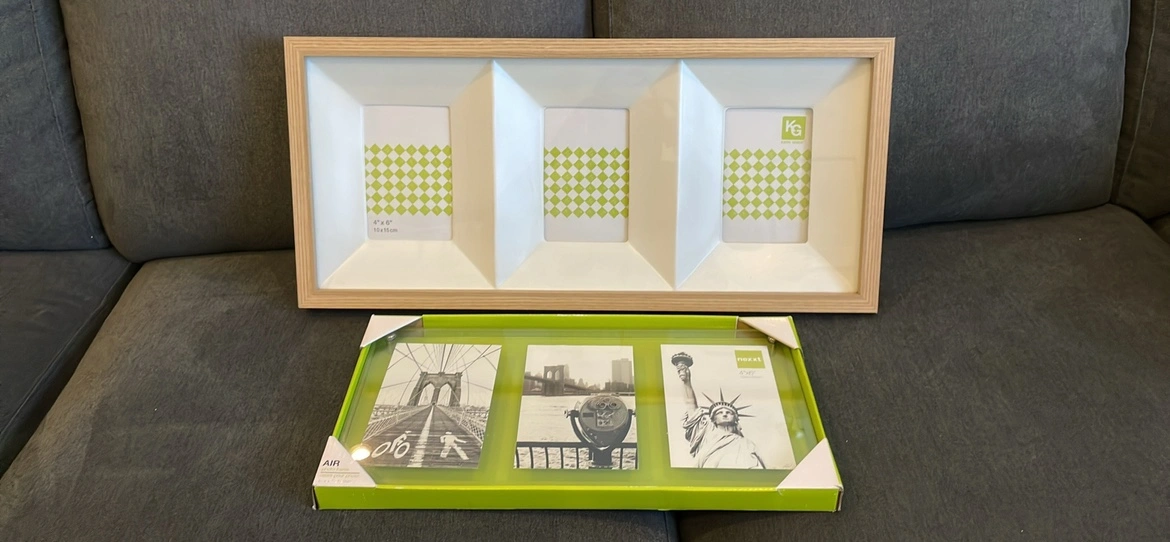 Beautiful Photo Frames. Both hold three 4x6 photos. One is Floating Glass frame - $10 The Wooden Frame has a beautiful white and modern inside boarder - $20 If you want both, you can have them for $25 total.