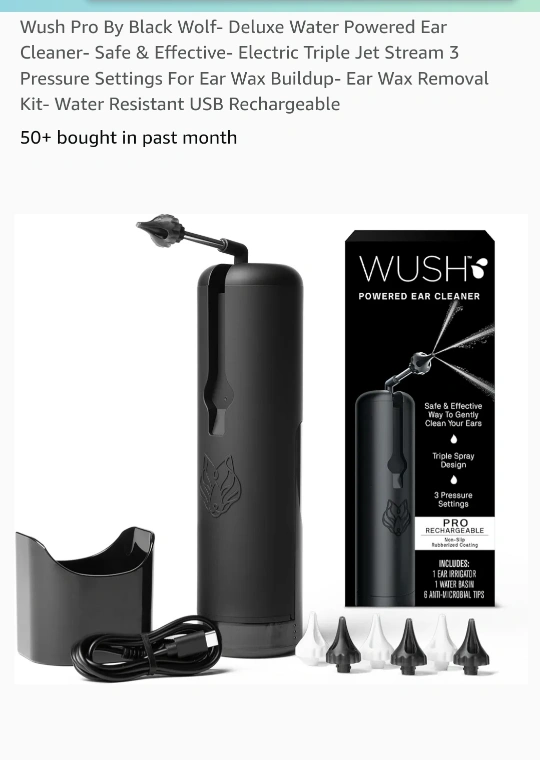 New Wush Pro By Black Wolf- Deluxe Water Powered Ear Cleaner- Safe & Effective- Electric Triple Jet Stream 3 Pressure Settings For Ear Wax Buildup- Ear Wax Removal Kit- Water Resistant USB Rechargeable pick up Edmonton Clareview cash no transfers