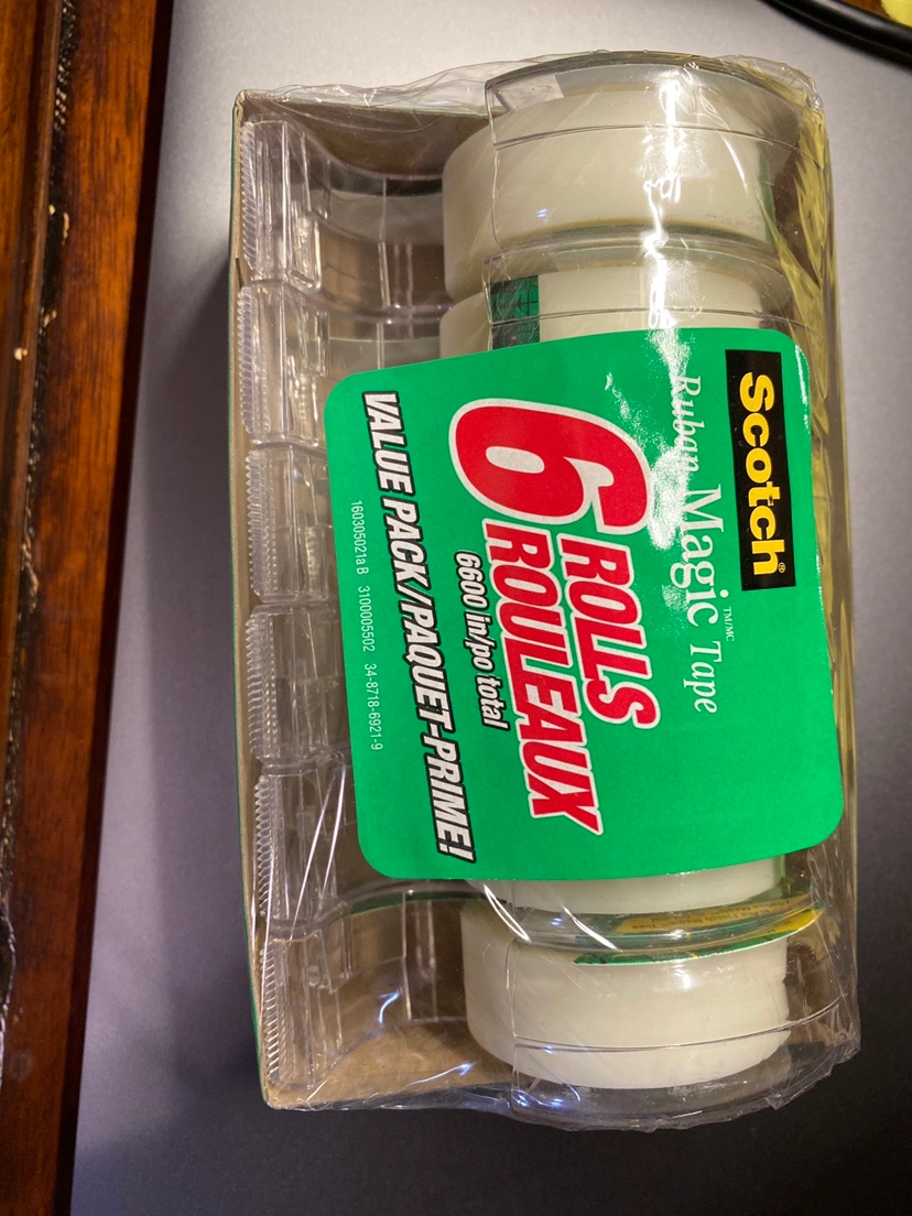6 rolls of Scotch Magic Tape. 6600 inches of total tape. Value Pack. I have 4 pcs