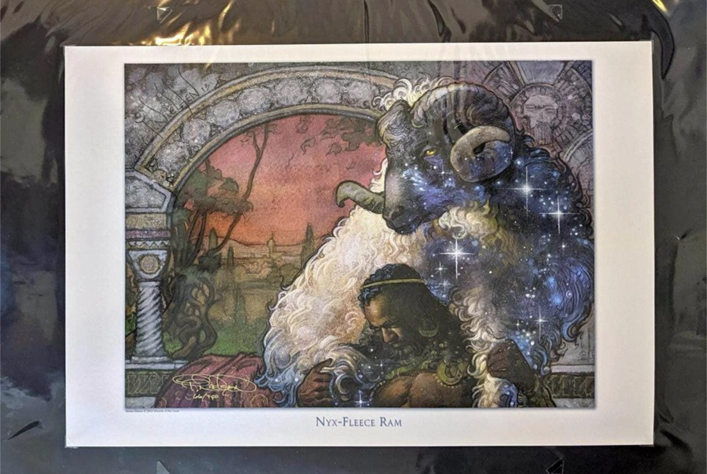 Nyx-Fleeced Ram by Terese Nielsen MTG Magic the Gathering D&D Mythic Odyssey of Theros 5th Edition Dungeons and Dragons. 66/750 Limited Edition Watercolor Paper with Gold Signature Print 13" x 19"