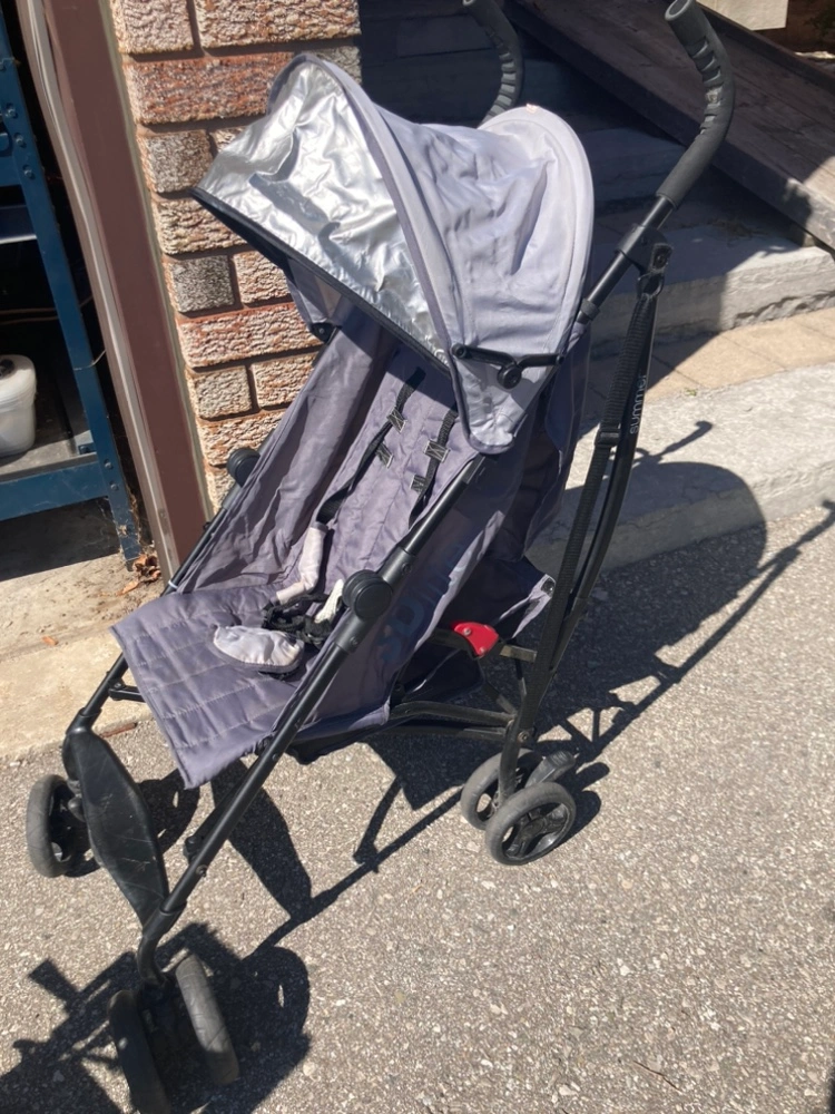 A compact and lightweight stroller with a 5-point harness, adjustable canopy, and storage basket. It folds easily for storage and transportation. SFPF home. Porch pick up near Dufferin and Centre, Thornhill.