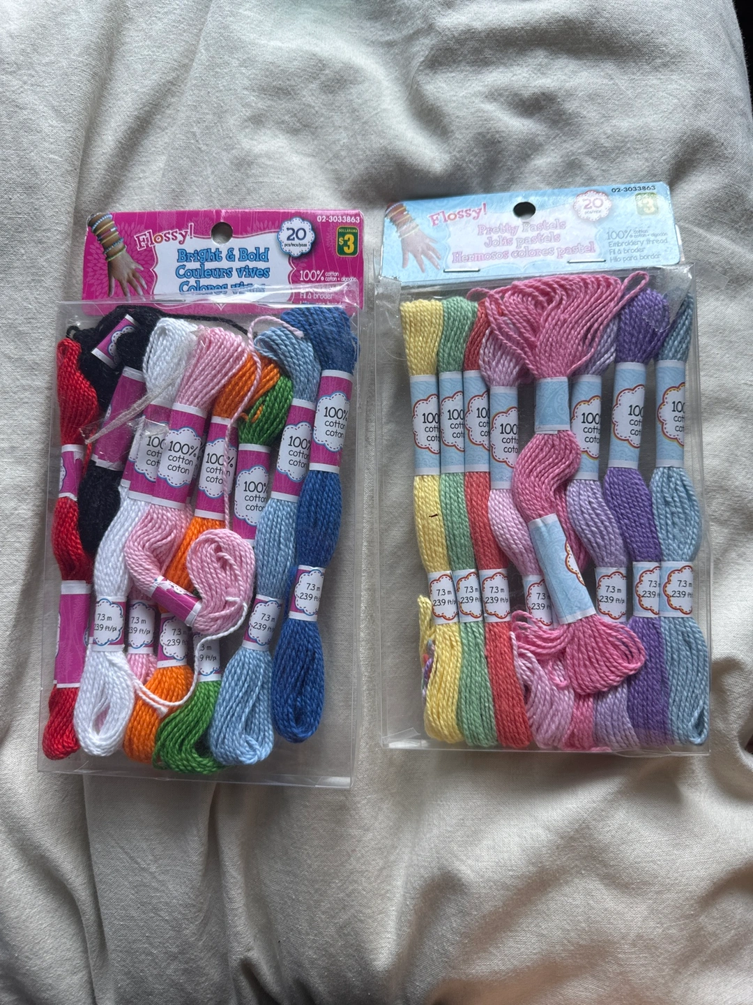 Two packs of embroidery thread, each with 20 different colours. Each pack includes 7.3 m of thread.