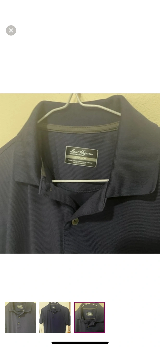 Navy blue, short sleeve polo shirt. Size Small and Medium
