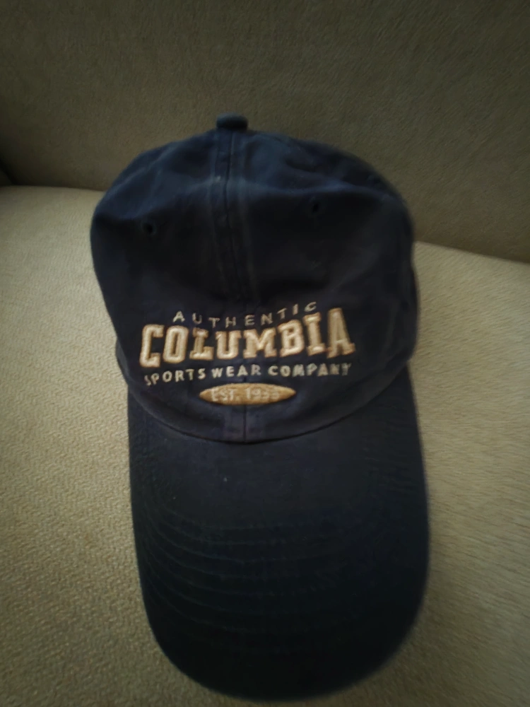 A blue Columbia Sportswear Company baseball cap with an embroidered logo on the front.