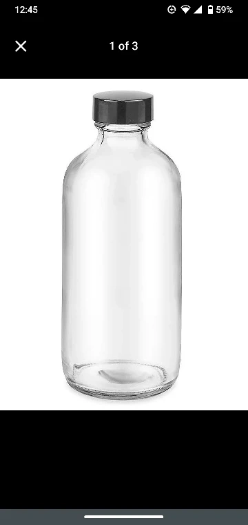 new Clear Boston Round Glass Bottles - 8 oz Store and pour chemicals and medicines. Narrow mouth for precision pouring. Maximum product visibility. FDA compliant. Phenolic black caps included. $2 each