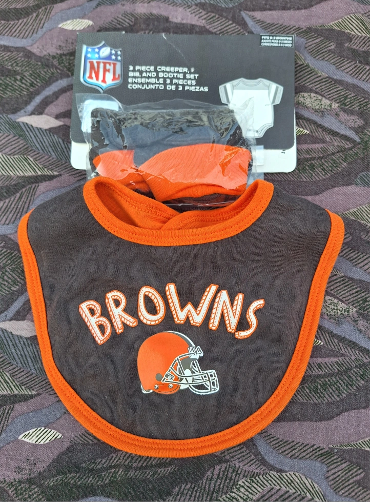 NFL Cleveland Browns 2-piece set of a bib and booties New, in package. Onesie not included Proceeds to cat rescue, Kit Cat Club Of Hamilton Upper Wentworth and Queensdale area Hamilton mountain Shipping available at buyers expense