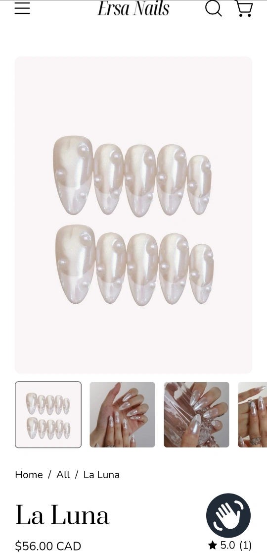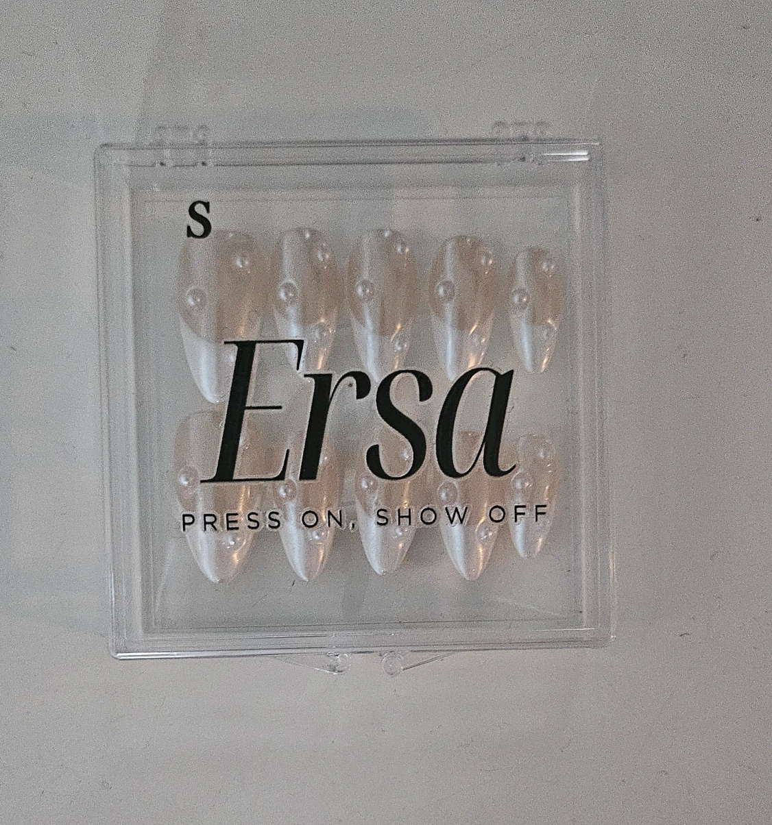 Size small, check photo for measurements Brand new set, never used Ersa Nails are great quality and very pretty!