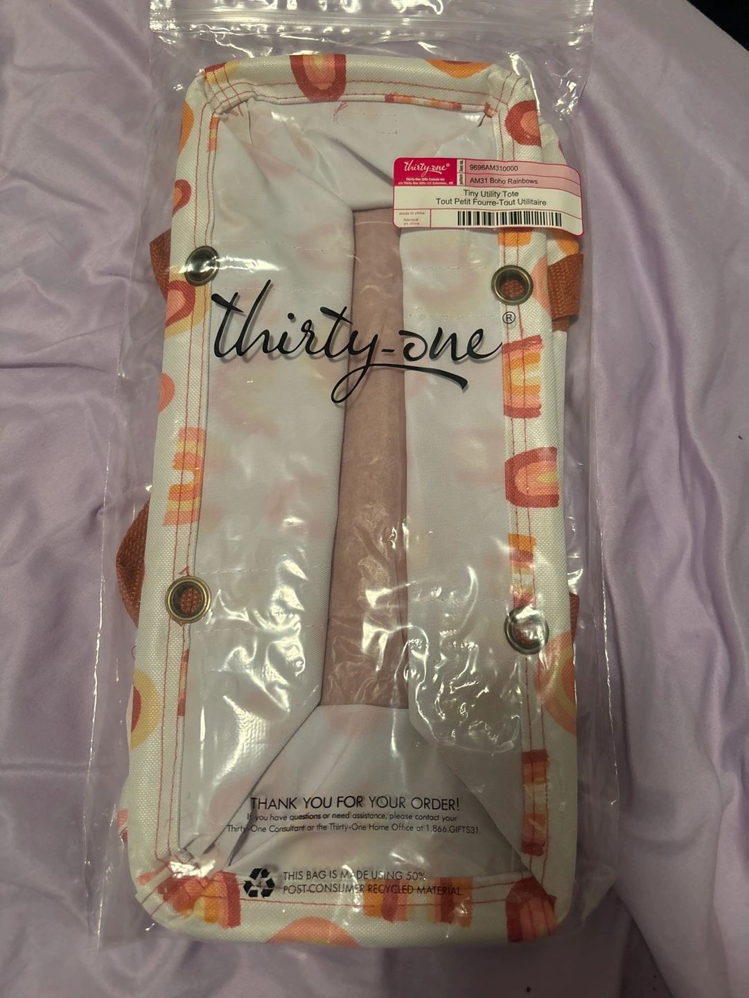 A Thirty-One Tiny Utility Tote with a Boho Rainbow pattern. Brand new in packaging, never used. Asking $8 or best offer. Pickup downtown Guelph. Smoke free/pet free