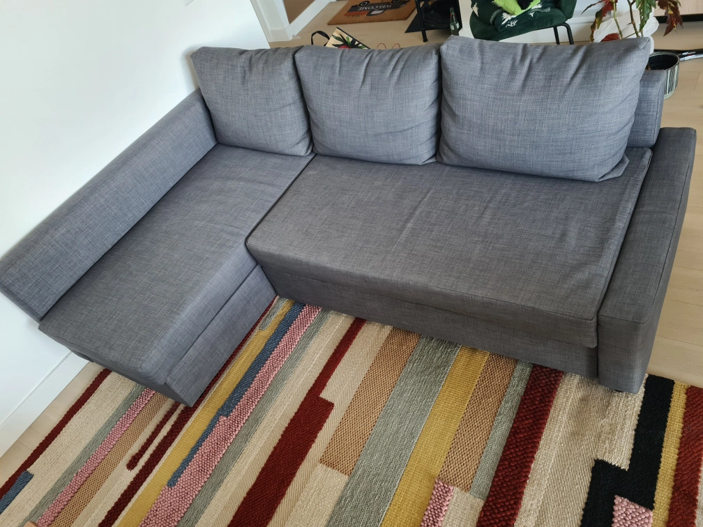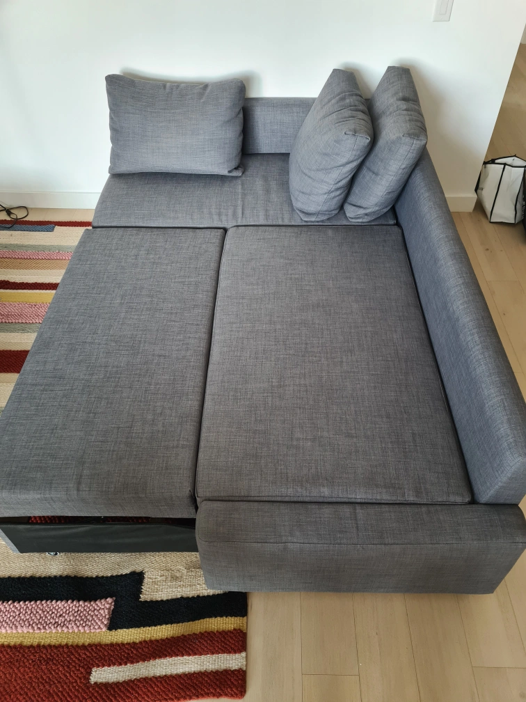 This sofa-bed is THE classic & comfortable sofa-bed ๐ด Very comfortable as a couch, so as for a bed. I used it to sleep some time, it is a comfortable queen size bed. I prefer from far this one than the convertible ones. Also, the included storage is very convenient. The couch is like-new, I used it for a few months only. My home is pet free and smoke free. Available from: September, 13th Ikea link: https://www.ikea.com/ca/en/p/friheten-corner-sofa-bed-with-storage-skiftebo-dark-gray-s69216757/ I can disassemble it, and help you move it if you want. I have no car though.