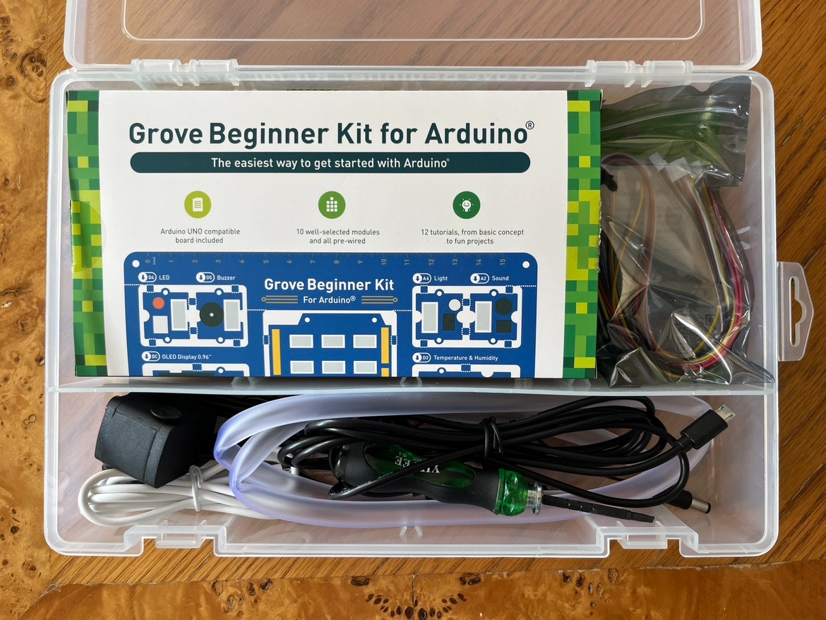 This was originally a course kit for EECS 1011 & 1021, bought in September 2023. Grove box has been opened, turned on, and connected via cable, but otherwise unused. Water pump and other supplies have never been used. Includes: PVC tube YIPPEE NO.838E 2-bit Screwdriver Solar/DC water pump JT-180A USB 2.0 A-Male to Micro B-Male cable USB 2.0 Type-C Male to Micro-B Male cable Plastic case Grove kit: - 1 x Grove Beginner Kit For Arduino Board - 1 x Micro USB Cable - 6 x Grove Cables - 1 x Grove - LED - 1 x Grove - Buzzer - 1 x Grove - OLED Display 0.96" - 1 x Grove - Button - 1 x Grove - Rotary Potentiometer - 1 x Grove - Light - 1 x Grove - Sound - 1 x Grove - Temperature & Humidity Sensor - 1 x Grove - Air Pressure Sensor - 1 x Grove - 3-Axis Accelerator - 1 x Seeeduino Lotus