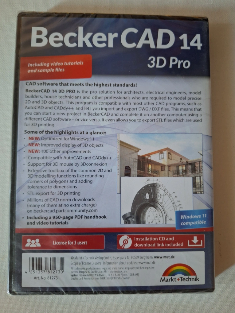 CAD software that meets the highest standards! BeckerCAD 14 3D Pro is the pro solution for architects, electrical engineers, model builders, house technicians and all who are professionally required to model precise 2D and 3D objects. This program is compatible with most DWG/DXF files meaning that you can start a new project in BeckerCAD and complete it on another computer using AutoCAD and CAD++, and let you import and export DWG/DXF files. This means a different CAD software - or vice versa. It even allows you to export STL files which are used for 3D printing.