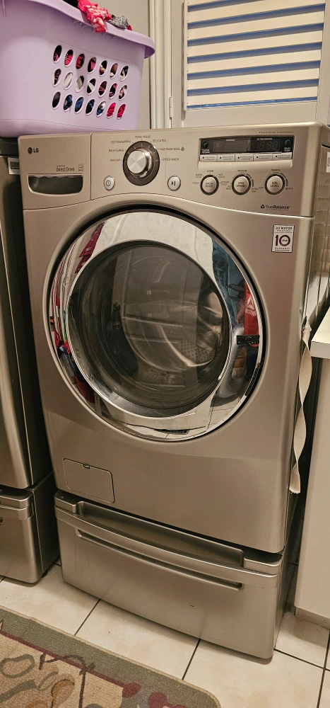 dryer with pedal stool works perfect fine. washer sold as is not working with pedal stool