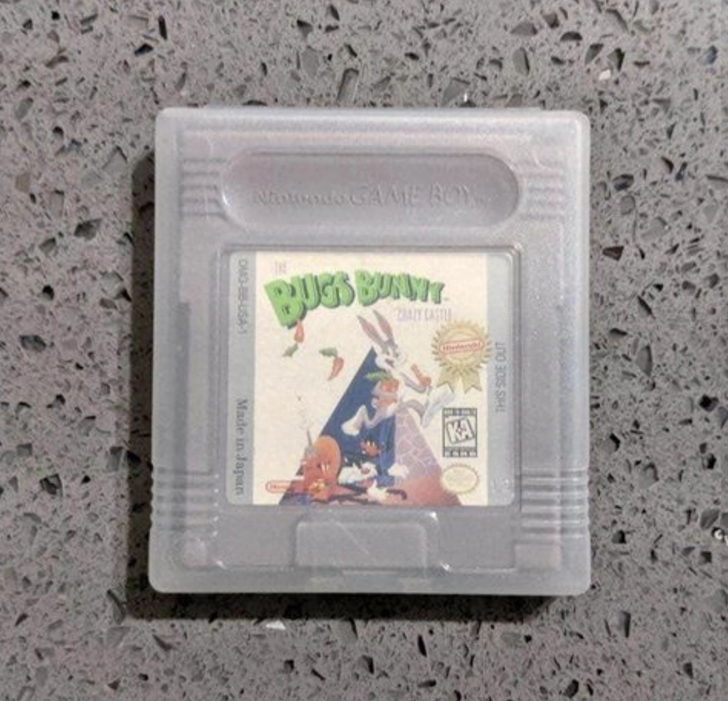 Bugs Bunny Crazy Castle Nintendo Gameboy Video Game $20 "While presented in a side-scroller format, Crazy Castle differs from standard side-scrollers such as Super Mario Bros. in that Bugs Bunny does not have the ability to jump; therefore, only by taking different routes can Bugs avoid enemies. Some of the levels have boxing gloves, invincibility potions, safes, crates, flower pots, or ten thousand-pound weights that can be used against the enemies in the game. As a result, the game has a "puzzle-solving" atmosphere. Players score 100 points for every carrot with the last one in each floor giving the player an extra life, 100 points for every enemy defeated using invincibility bottles, 500 points per enemy using boxing glove, and 1000 points per enemy that gets hit with heavy objects. Because most NES game cartridges lacked the ability to save, passwords can be used to start at a certain level in this game. The NES version of Bugs Bunny Crazy Castle was prominently featured in an Angry Video Game Nerd episode of the same name, which was released on August 5, 2009. It was featured again in the 2021 feature film, Space Jam: A New Legacy for a few brief moments, where a young LeBron James is given a Game Boy with the game inside it." Video Games come with Plastic Protective Cases