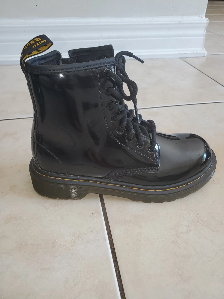 *firm price* Selling used kids Dr. Marten patent boots in size 13 US youth for $80 as is. The boots are intact.