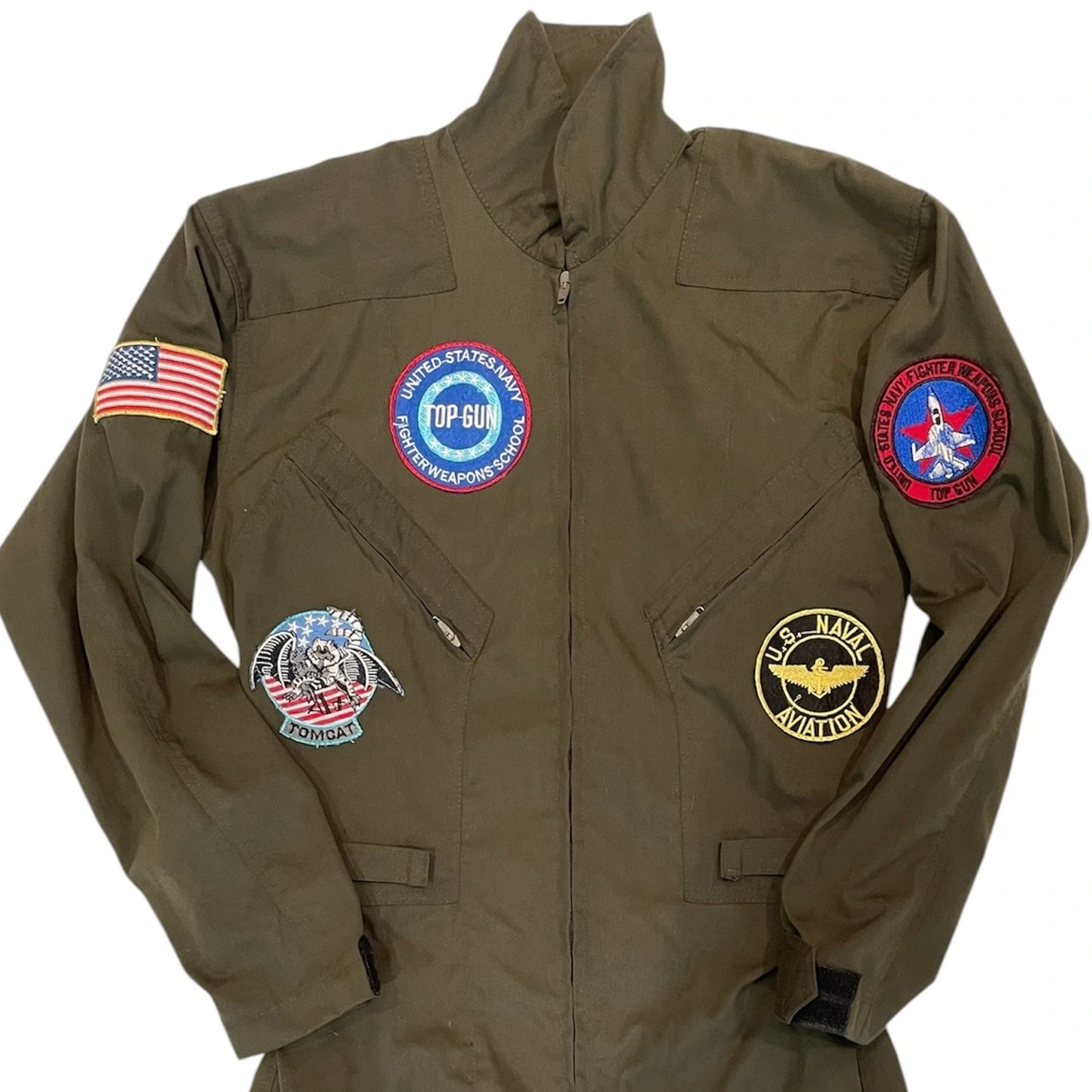 Do you feel the need - the need to be a 'Maverick' for Halloween? This officially licensed costume looks like it flew right out of Top Gun, complete with accurate replica patches featured in the film. Good quality material that feels like canvas, with lots of zippers, pockets and other authentic flight suit details. All you need is a pair of aviators to complete the look! Excellent condition; worn a couple times. Measurements: length = 59.5" / shoulders = 18" / waist = 15.5" ** Label says XL, but it's more like a Sm/Med.** Material: 17% Cotton, 83% Polyester To be picked up in the Yonge & Davisville area.