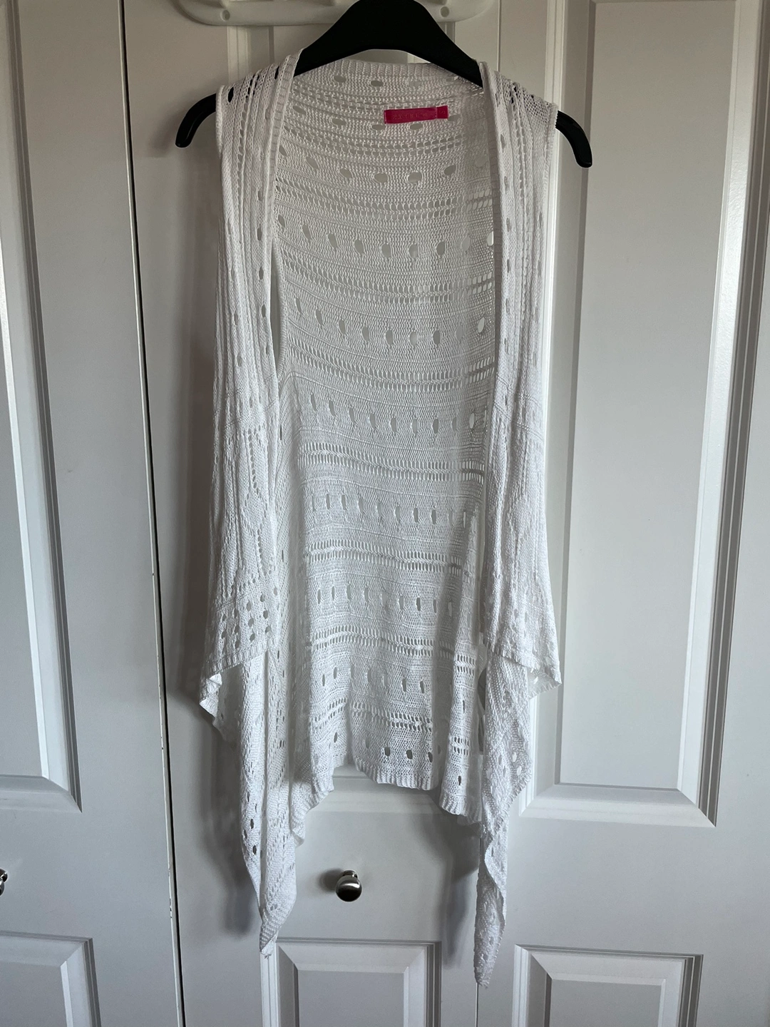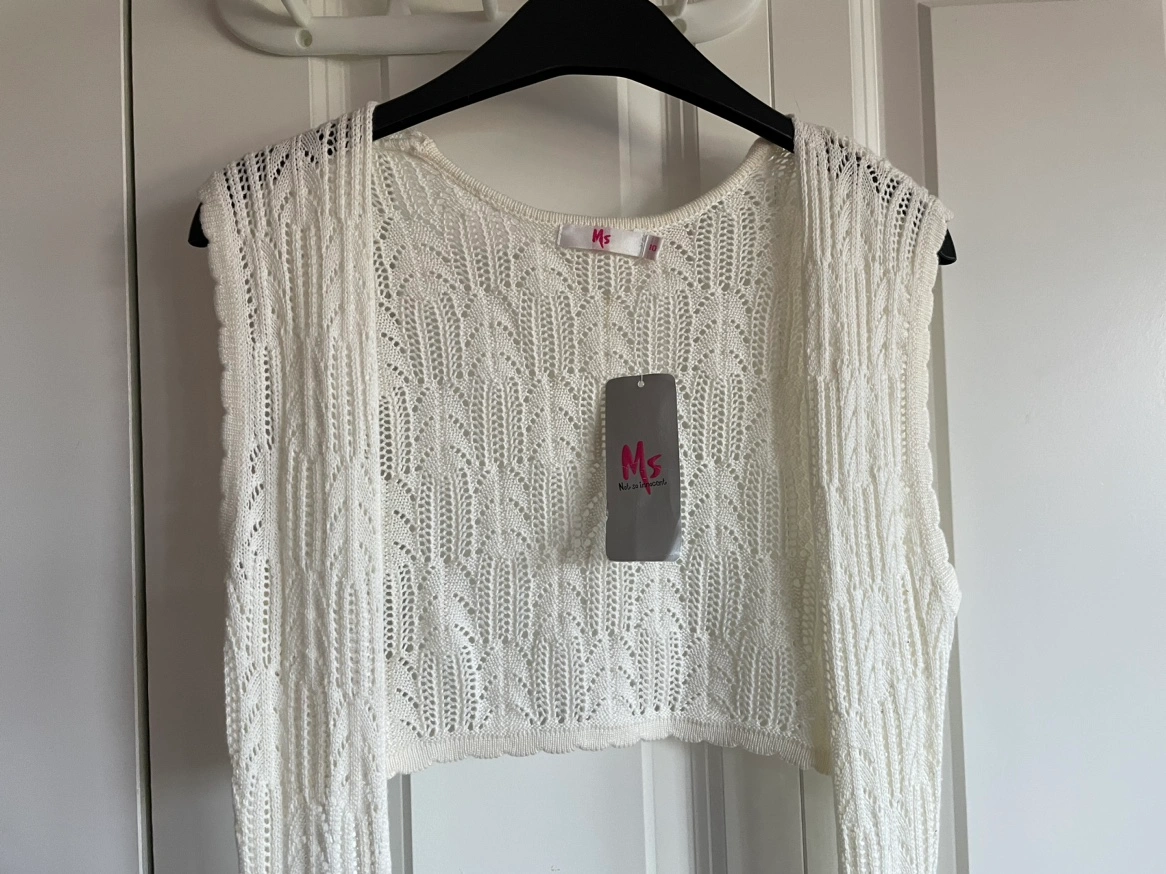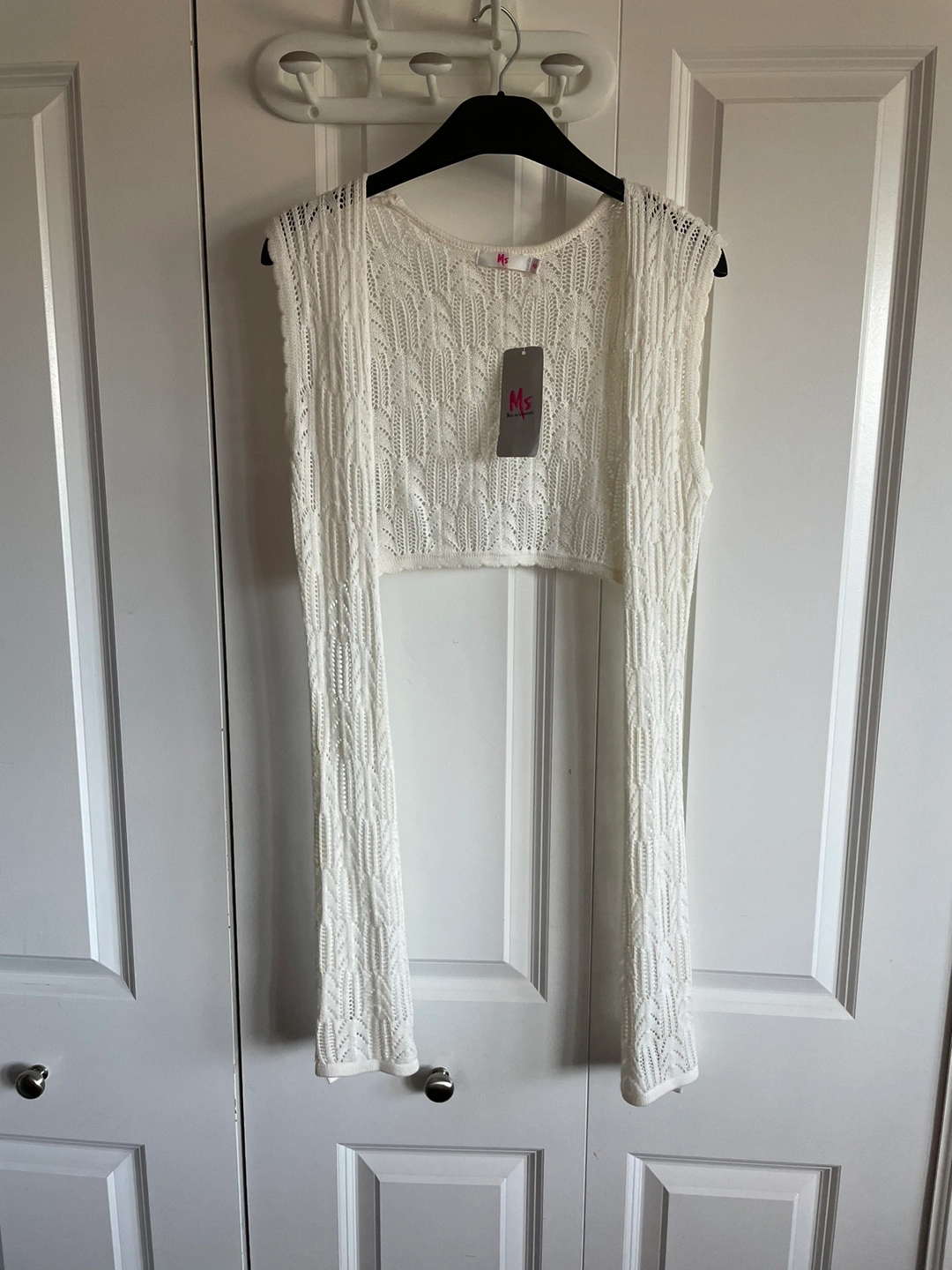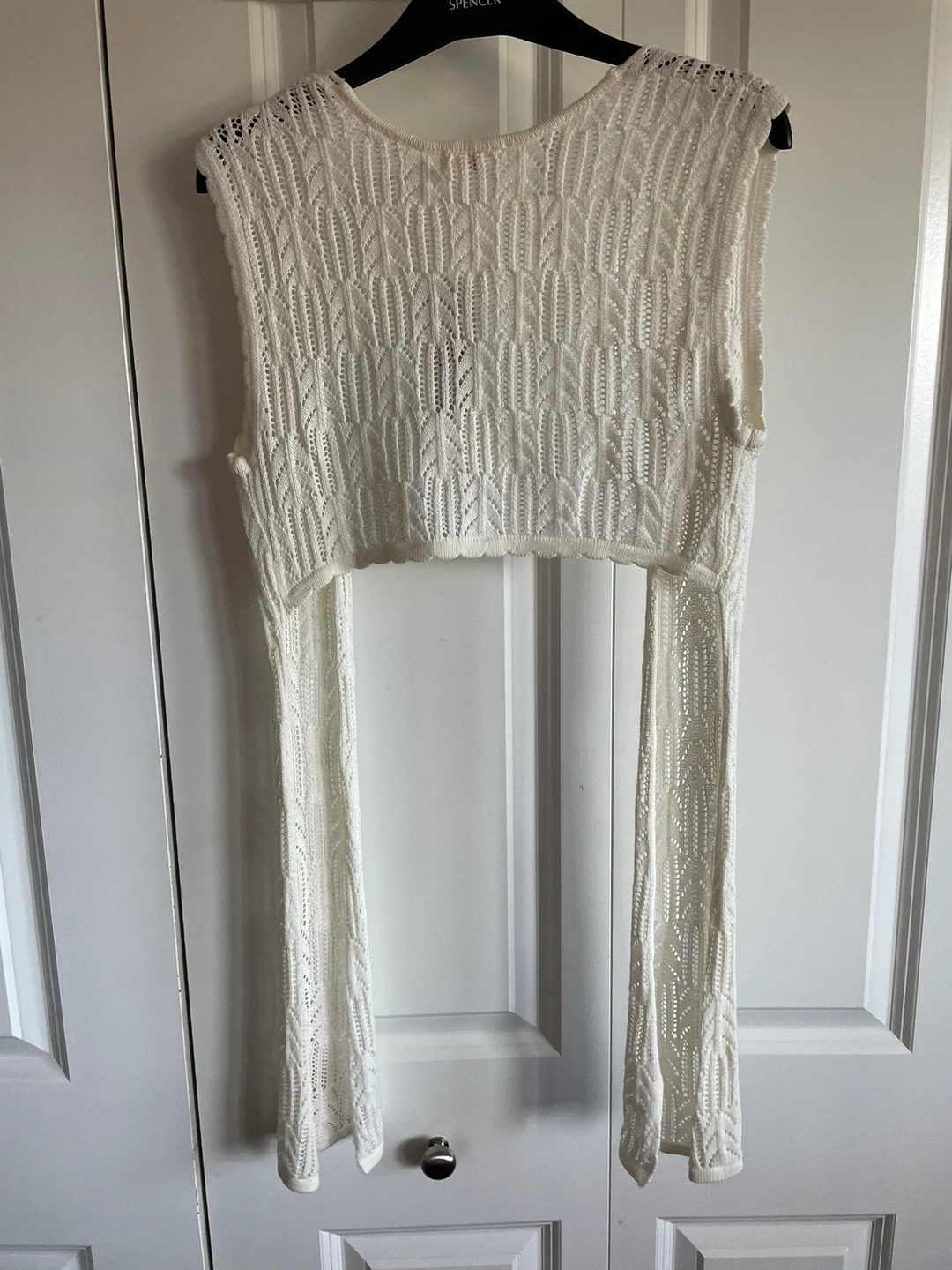 1. White cropped knitted bolero 2. White knitted over clothes vest — lightweight material perfect for fall or spring Both are in a perfect condition!