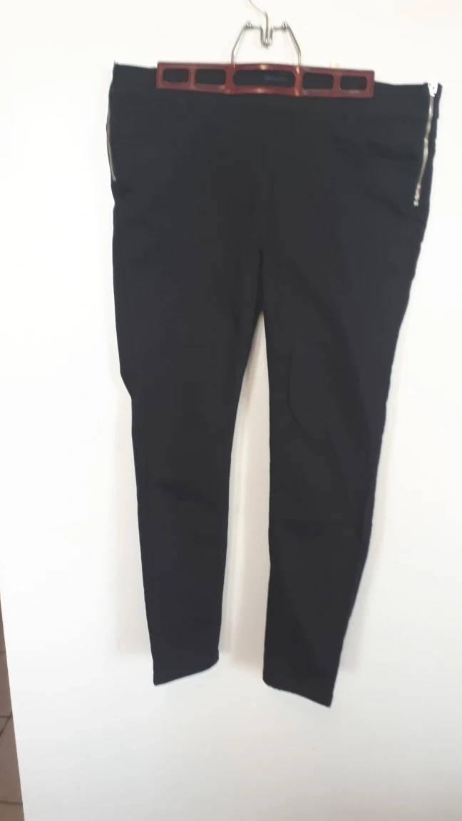 Black "Only" brand jeans, size L. They feature a zippers on the side.