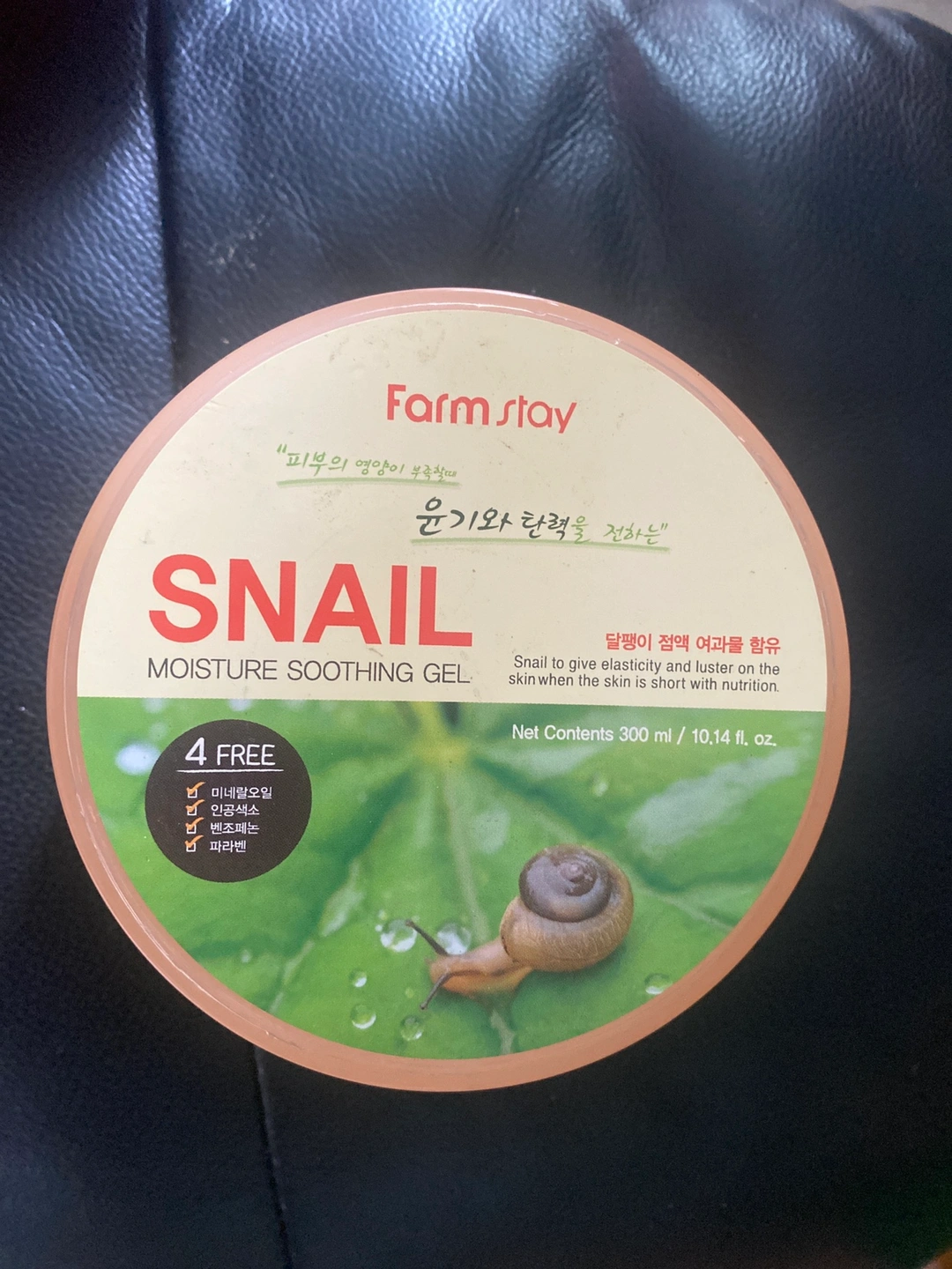 This is a 300ml jar of Farmstay Snail Moisture Soothing Gel with 4 free ingredients. It contains snail mucus filtrate and is designed to give elasticity and luster to the skin.