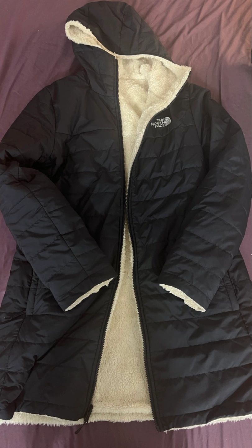 THE NORTH FACE Women's Mossbud Insulated Reversible Parka, Aviator Navy/Vintage White, Large Original Price: 150 USD Product link: https://www.cabelas.ca/product/137890/the-north-face-womens-mossbud-insulated-reversible-parka