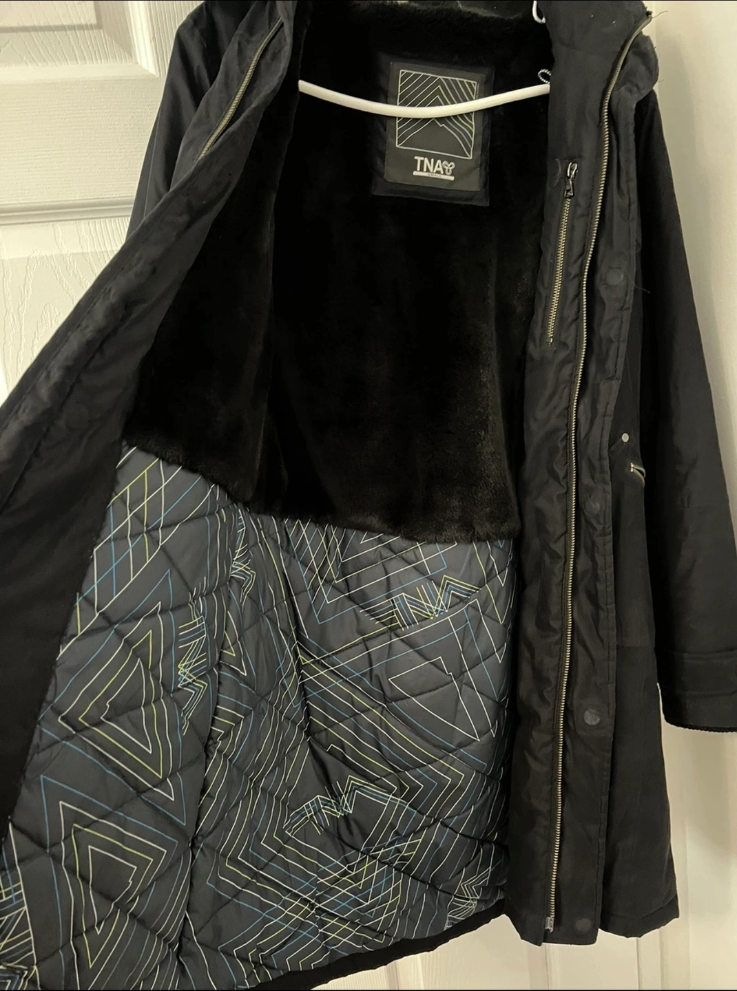 Great condition TNA jacket, I’ve taken pics of the actual jacket and also attached pictures of a similar one of the aritzia website. https://www.aritzia.com/en/product/the-summit-parka/75474003.html?gclid=EAIaIQobChMIrLbEj8rpgQMVa51aBR28YwVfEAQYAiABEgI99PD_BwE Note: the pictures I’ve attached from website are not the exact same jacket but they’re similar enough. Size small, worn before but in great condition, does not come with the fur in the hood.