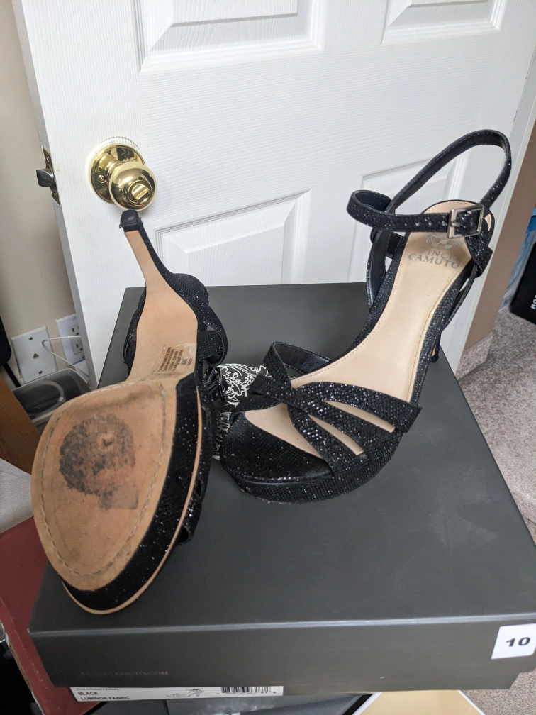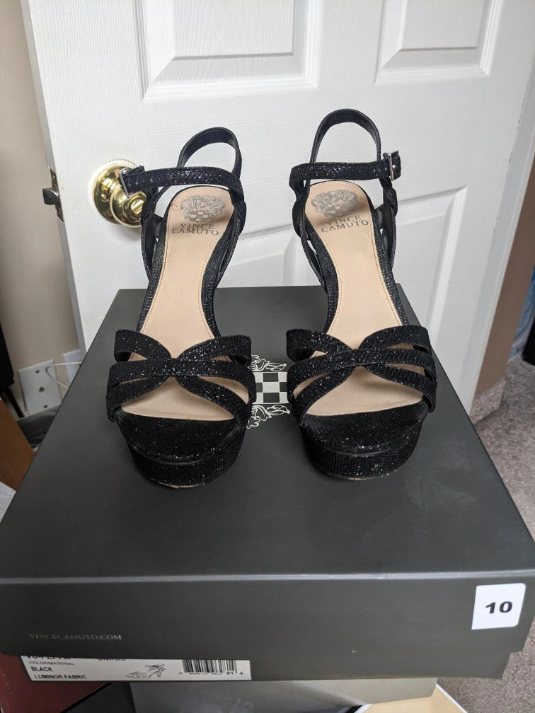 Black glitter heeled sandals Black platform glitter heels, size 8.5 like new.