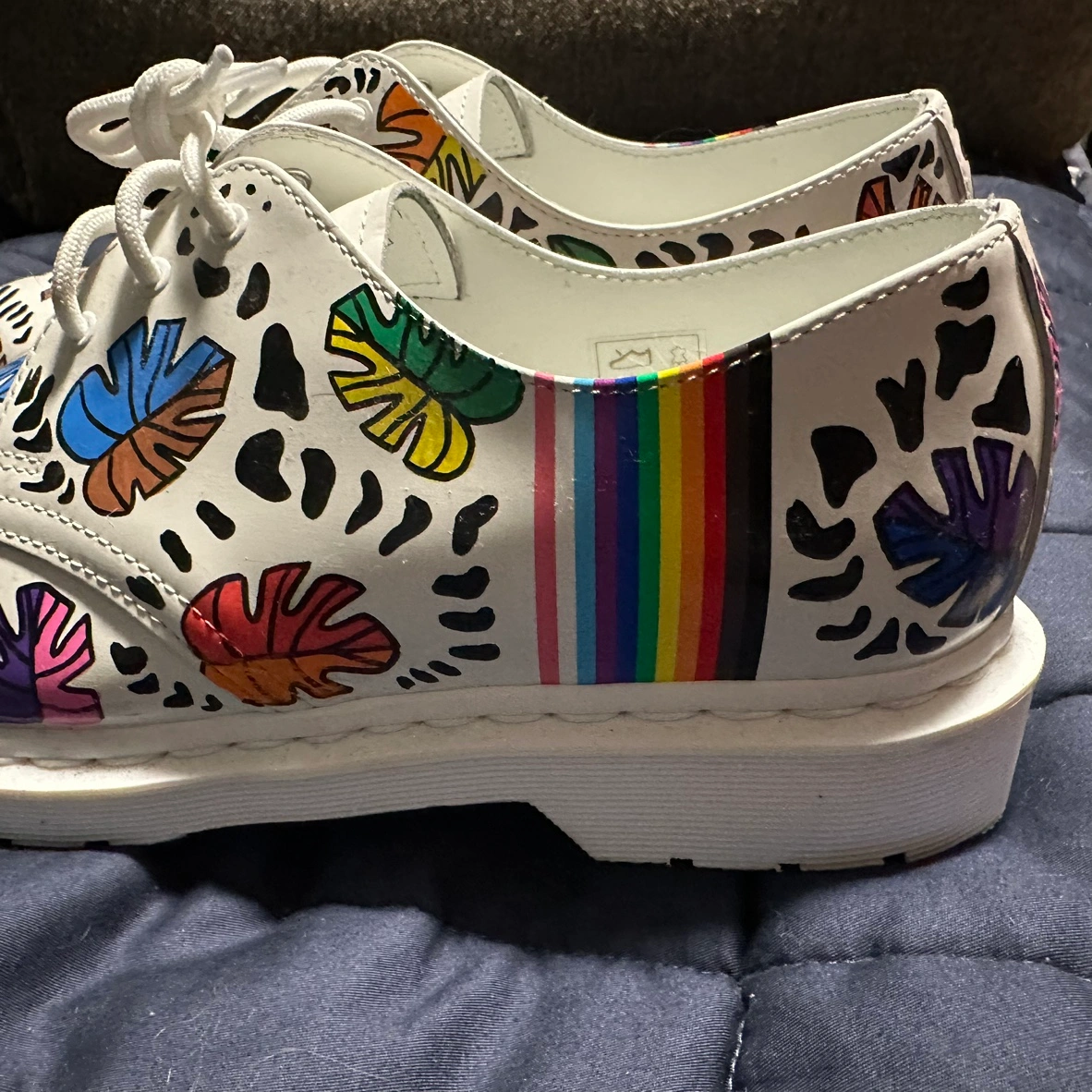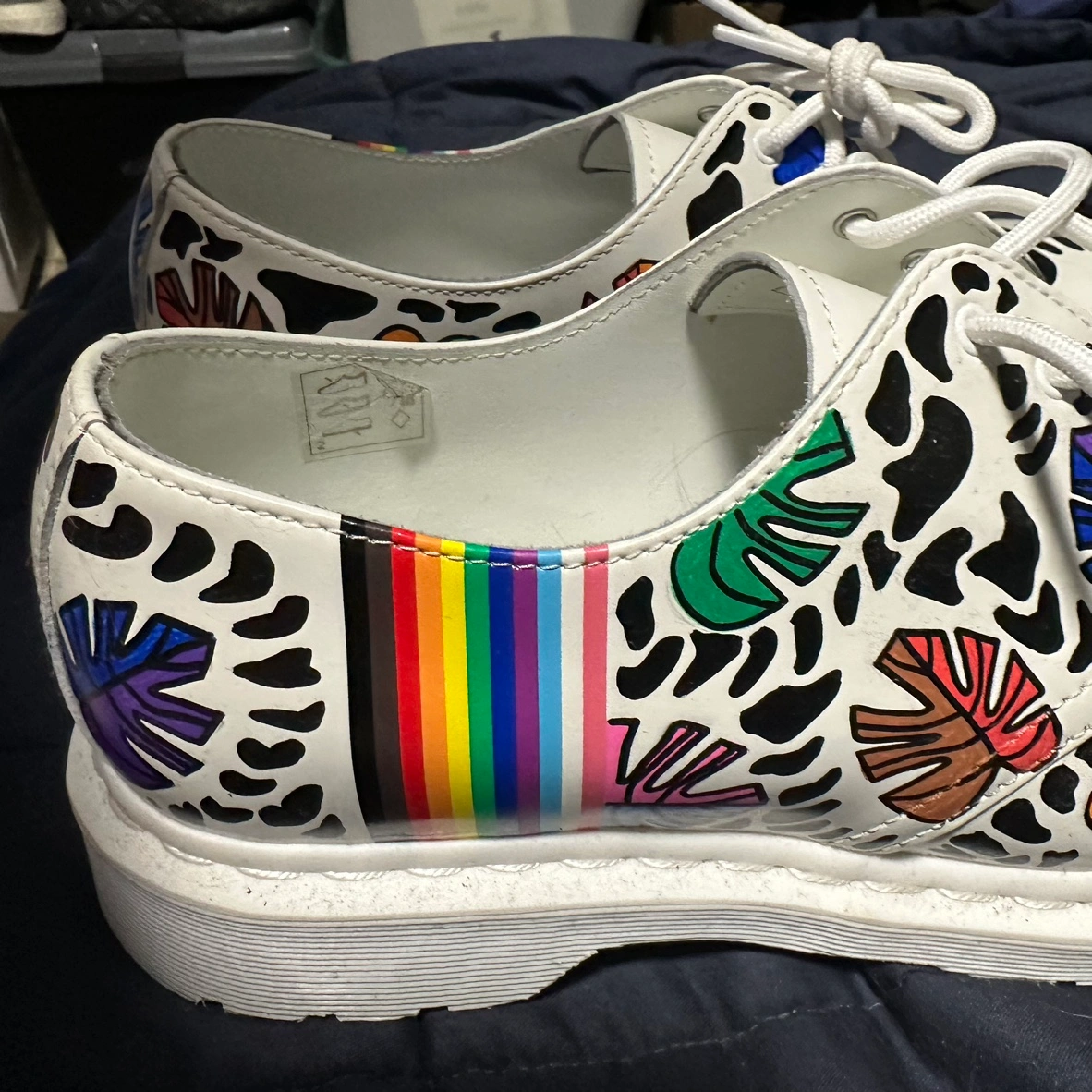 Unworn 1461 Oxford Pride edition with custom artwork. Unknown artist. Shoes have never been worn. Artwork is not waterproof.