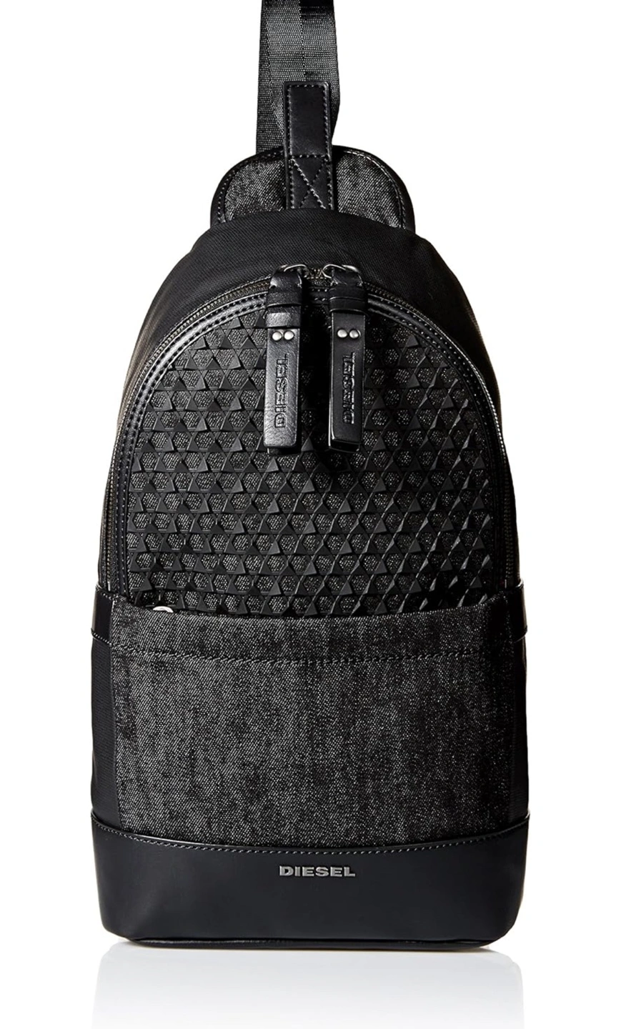 A black Diesel sling bag in mint condition. Features a zipper closure, adjustable strap, multiple pockets, denim and microinjection molded rubber giving a 3D pyramid studded effect. Would be a great bag for a man on the go. Bought for $150, Cash & pick up only