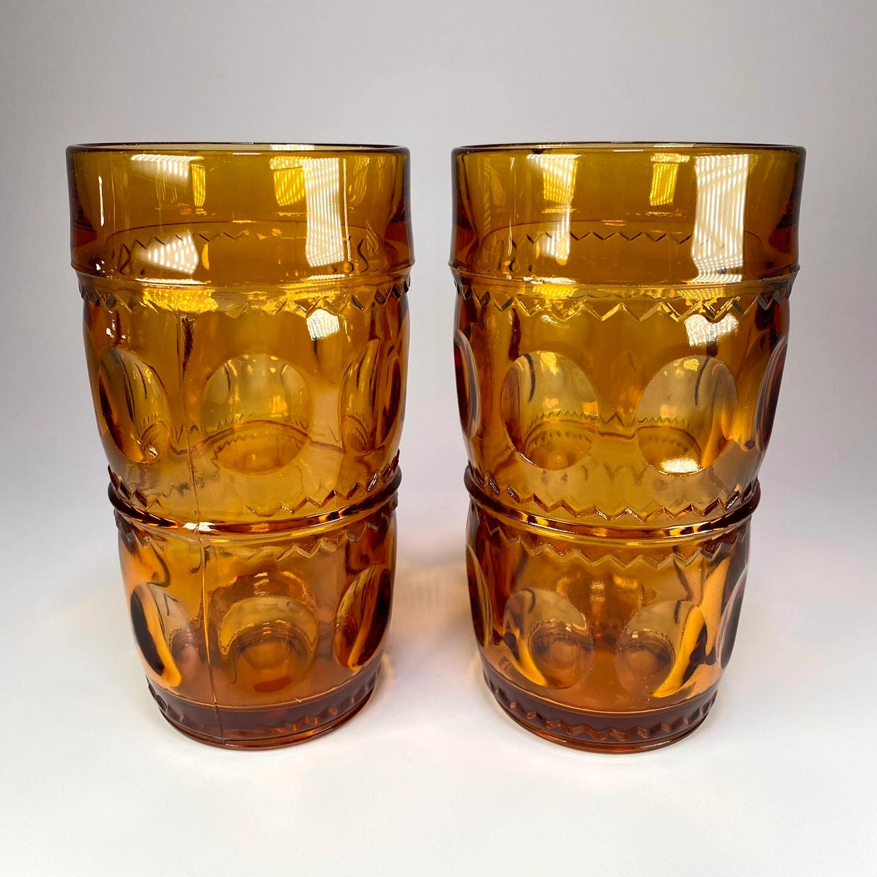 Vintage pair of Indiana Glass Kings Crown amber tumblers. 5.5โh ๐ฅ$15/pair - 2 pairs avail. โ Yes, it is available ๐ Pick up near Bloor & Ossington ๐ Downtown delivery extra ๐ฆ Ask about shipping