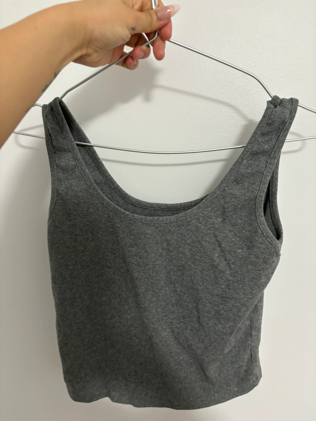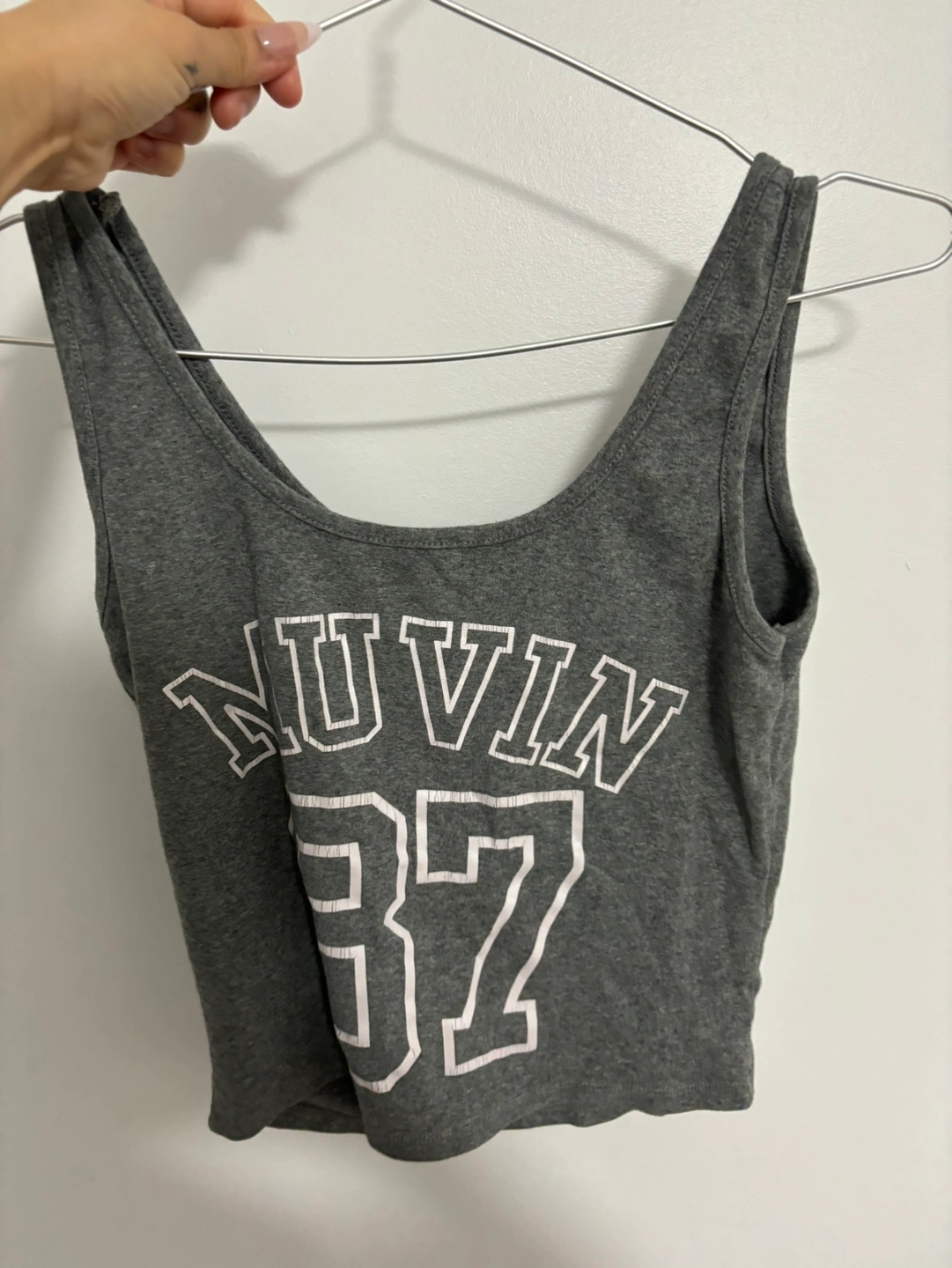 A grey sleeveless crop top with a white "NUVIN 37" graphic on the front. PICK UP ONLY