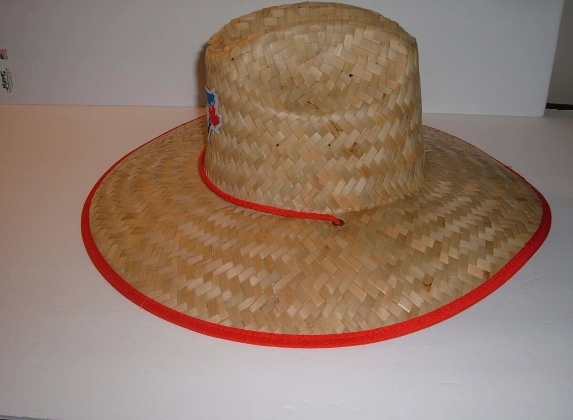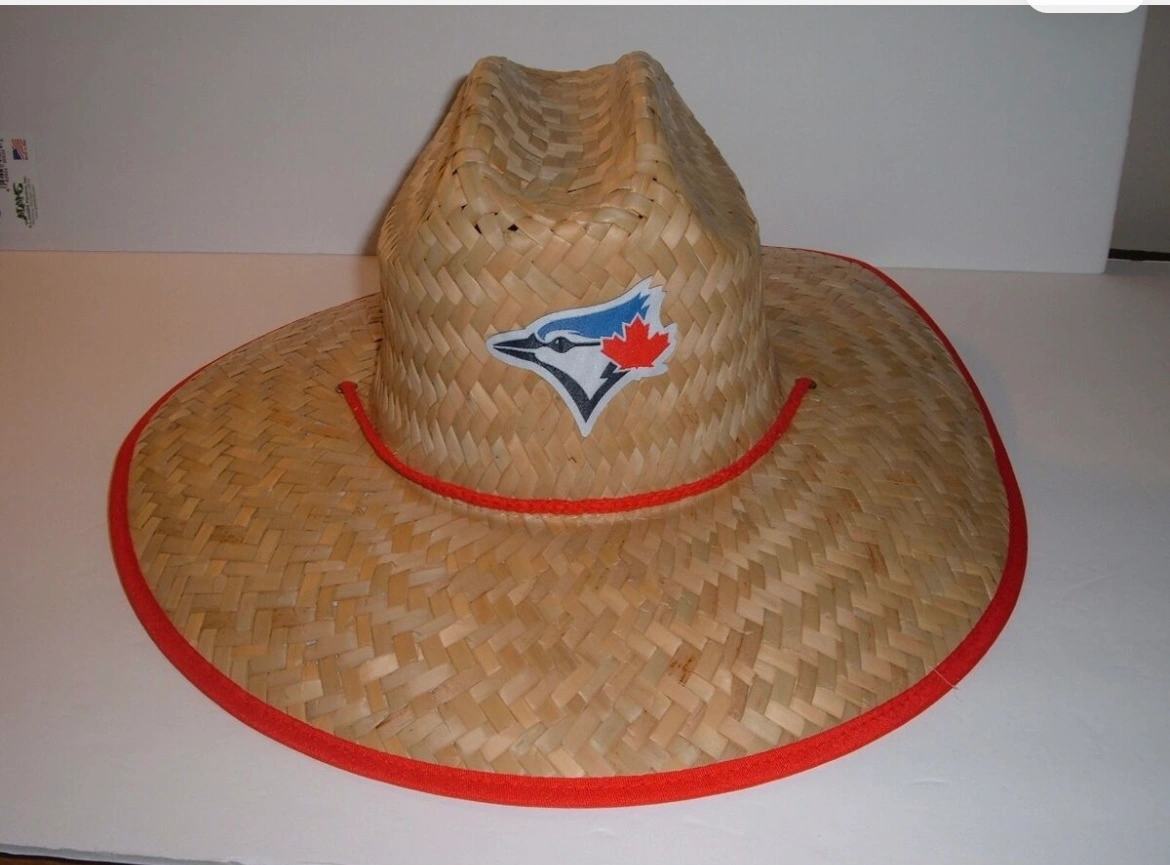 A straw hat featuring a Toronto Blue Jays logo. The hat has an orange trim. Condition New Quantity 1 available Brand Melonwear League Major League (MLB) Item description from the seller Rare Toronto Blue Jays Straw SGA Hat. Brand new. One size fits all