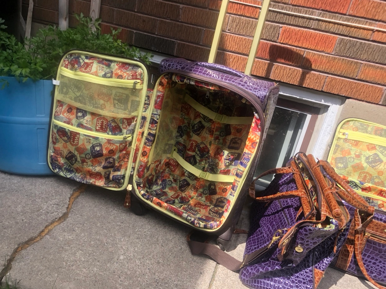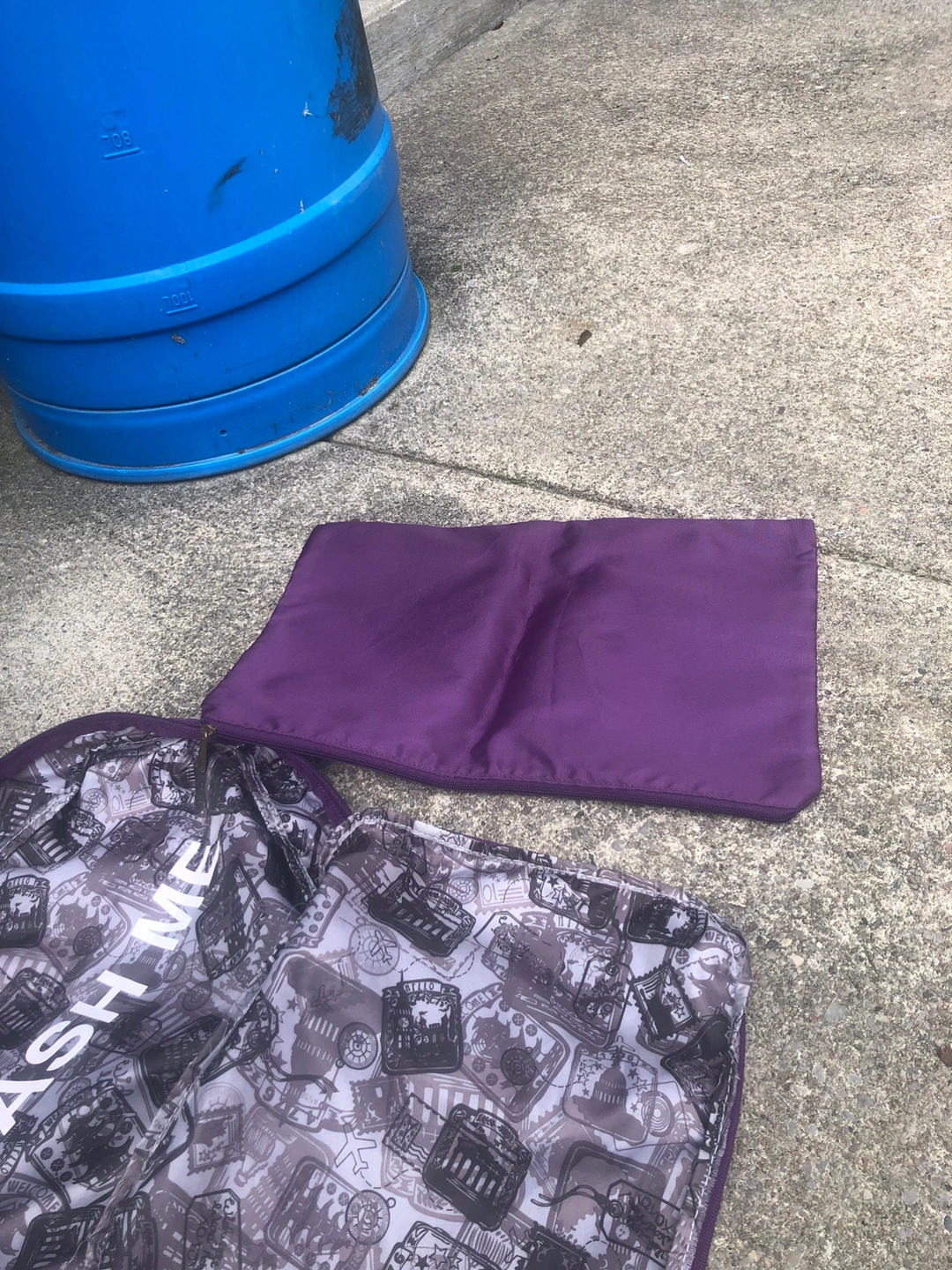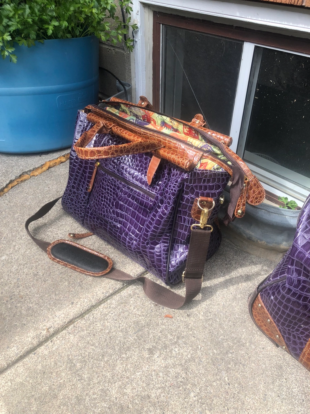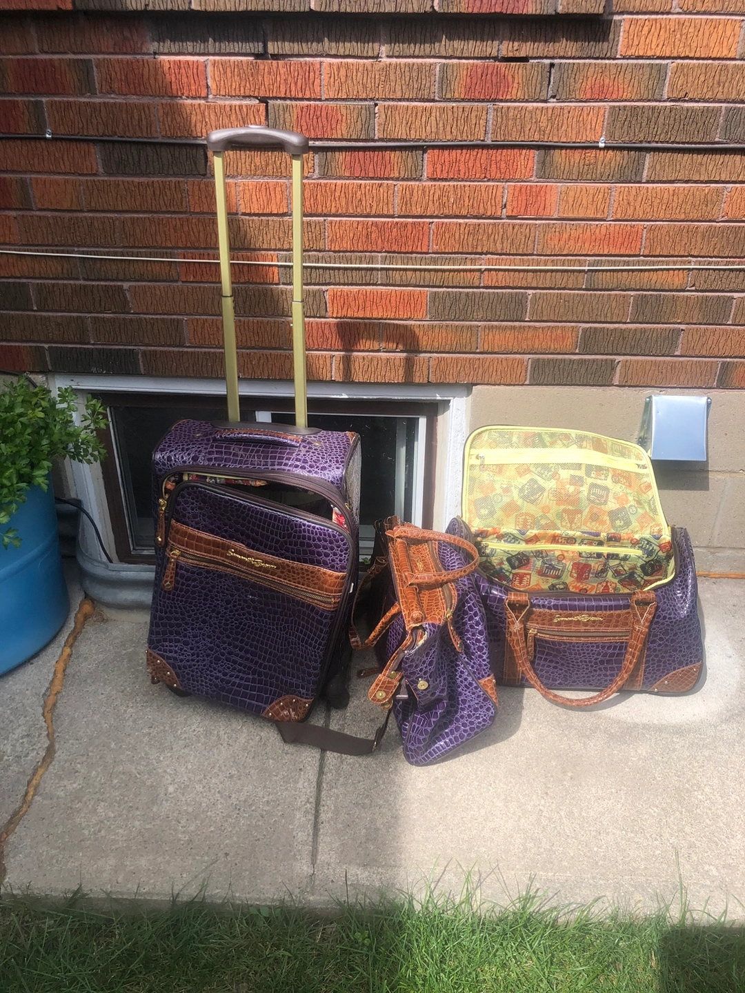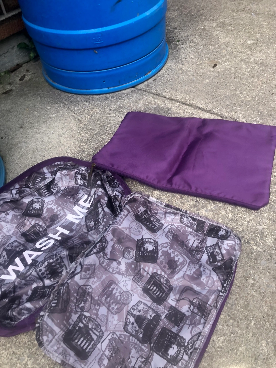 6 Piece Purple luggage set Consist of a Duffle Bag , a smaller carry-on Bag and suitcase on wheels with a Pull out Handle : Also comes with 3 Packing Squares and a Mesh attachment bag 🙏Great Condition NO LOWBALL OFFERS