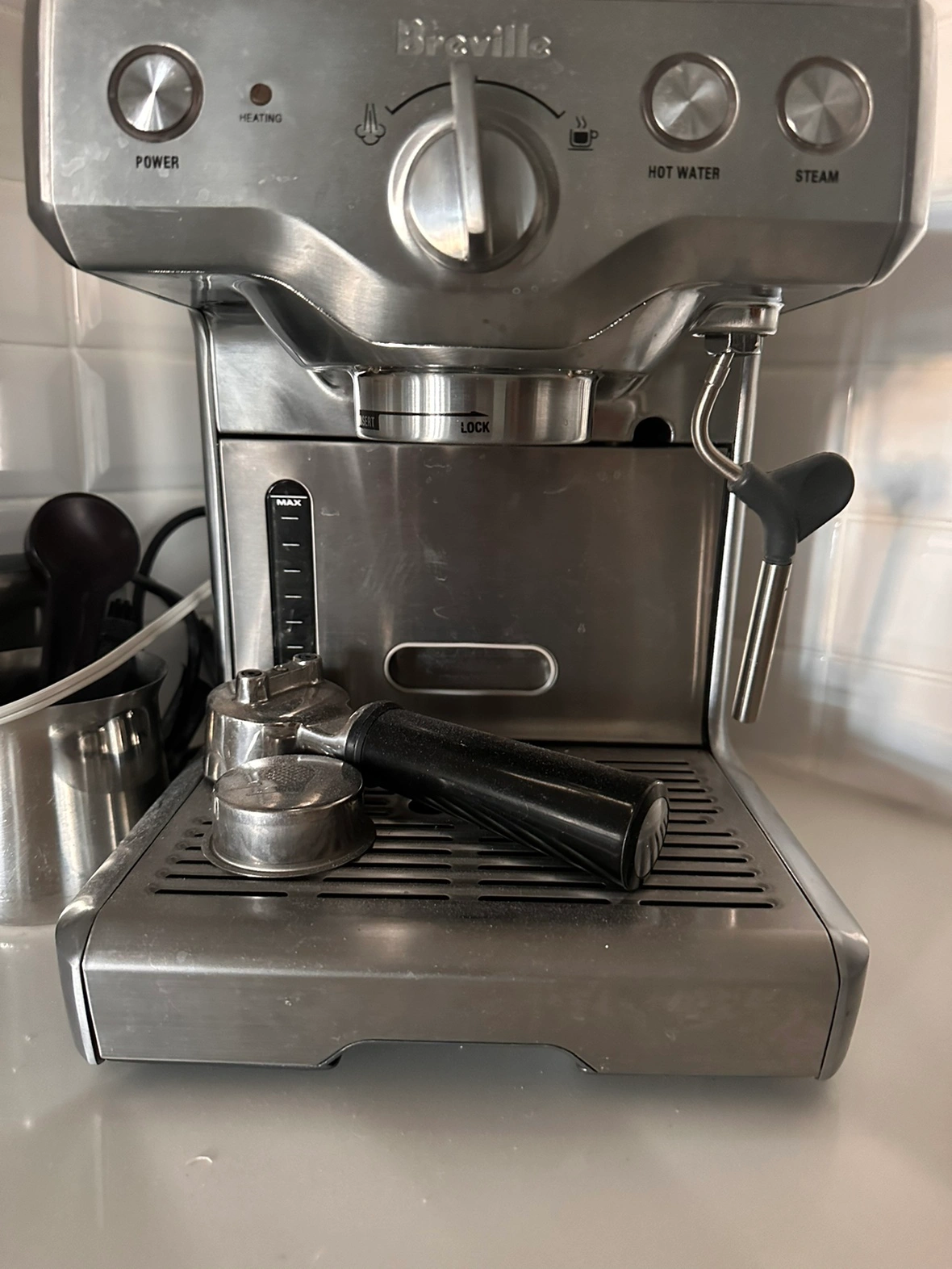 This espresso machine is in great condition and has been used sparingly. It includes all the original accessories. Cappuccino part needs repair but makes very good espresso
